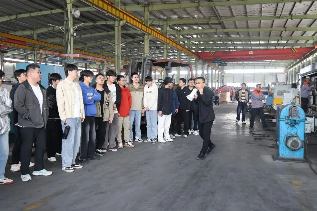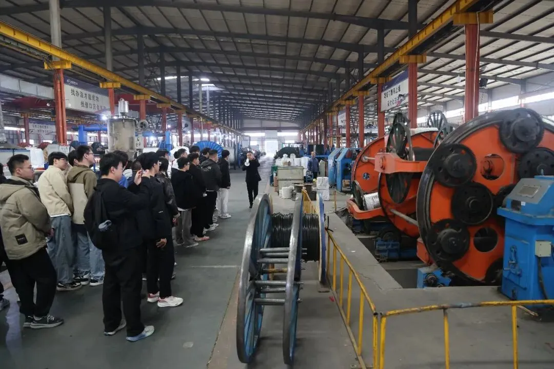 在企业技术人员的带领下,师生们深入生产车间一线,开启实地观摩学习。从原材料筛选、拉丝冷却、绞线成缆,到绝缘层挤包、成品质量检测,技术人员结合生产实际,详细讲解了电缆制造的全流程,重点介绍了企业在高压电缆绝缘材料、环保线缆等领域的创新突破,以及智能化生产设备的运行原理。