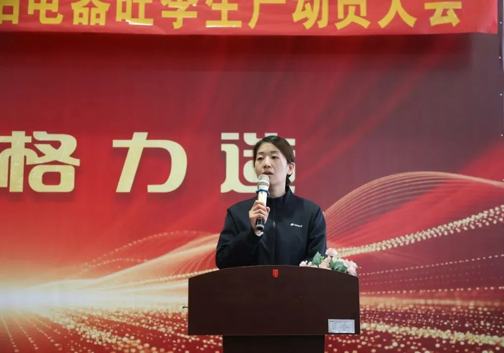 随后,制造分厂李亚军厂长就旺季生产保障作表态发言。他指出,分厂将严格落实生产计划,合理调配人员与设备,优化班组排班与现场流转,全力保障产线连续高效运行。严格守住安全与质量底线,强化过程管控,减少停线与异常。全体干部员工将迎难而上、冲锋在前,以饱满状态投入生产攻坚,不折不扣执行各项部署,坚决扛起产能重任,全力以赴确保37万台生产目标圆满达成。