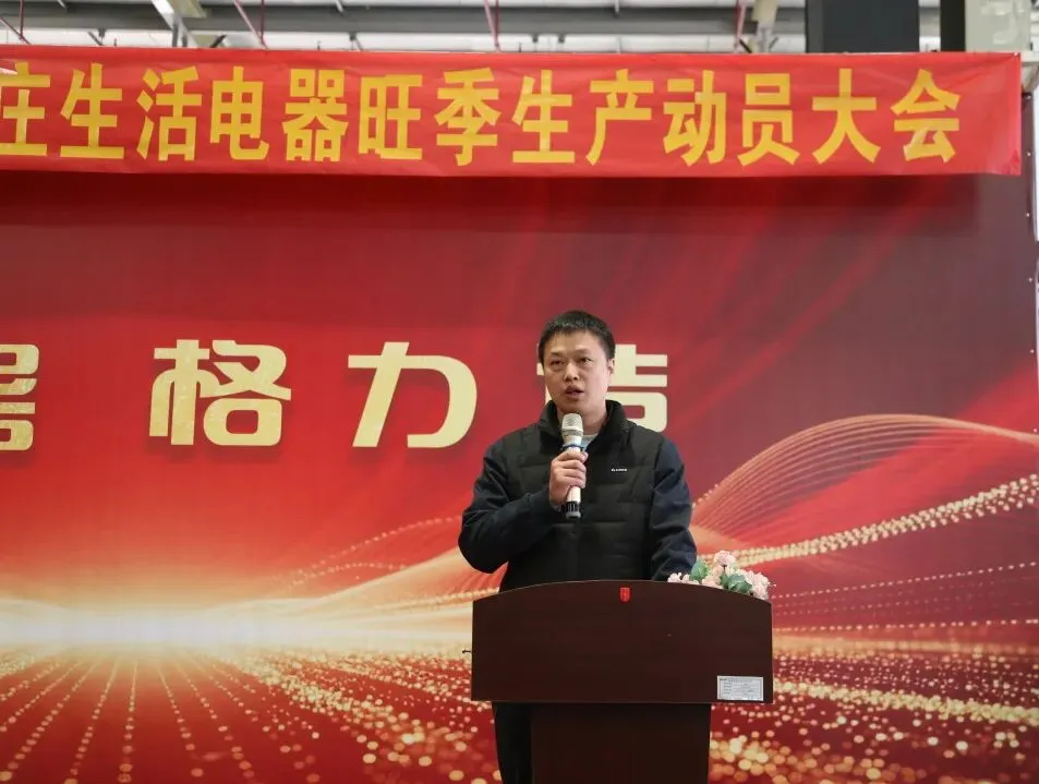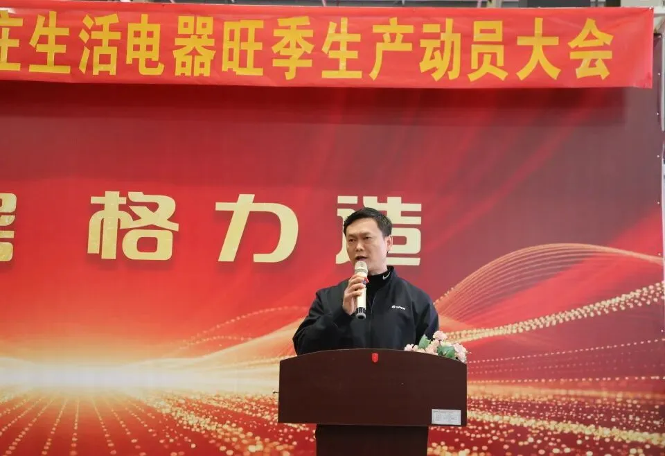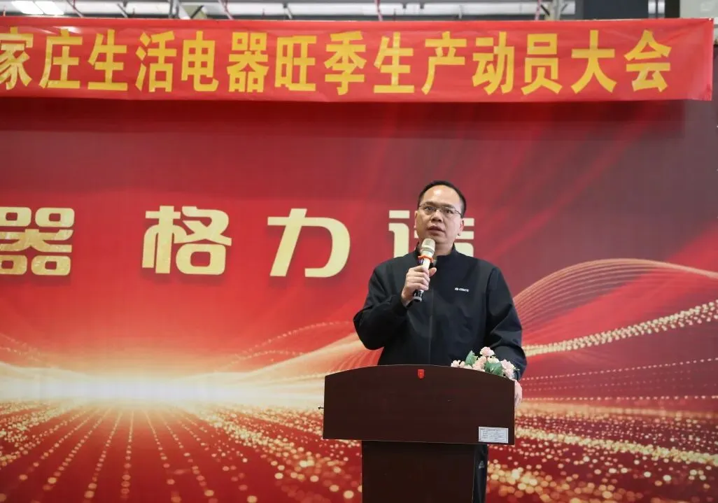 4月8日,石家庄生活电器组织各单位中干、生产主管及一线员工召开了旺季生产动员大会,聚焦生产目标及销售要货,压实责任,凝心聚力,聚势向前,坚决打赢4月风扇旺季生产攻坚战。