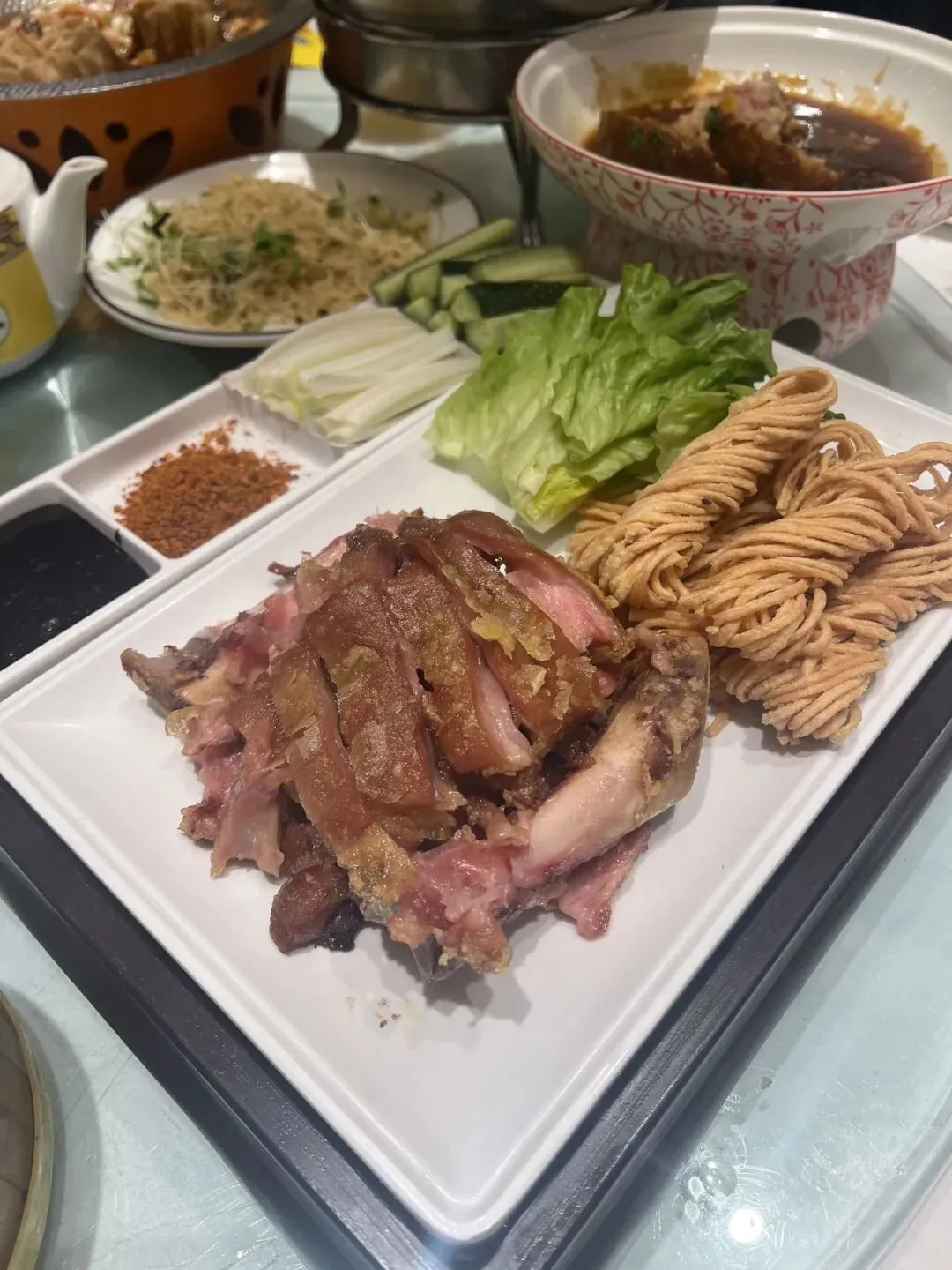 在平台上团的套餐,菜量够吃,但整体感觉凉凉的,不怎么热乎,有两个需要加热的菜,后来主动要求,才给点了酒精加热,服务一般,服务员好像没顾上我们,上来的菜三四个摆在旁边的小桌上,没有及时端到桌上。