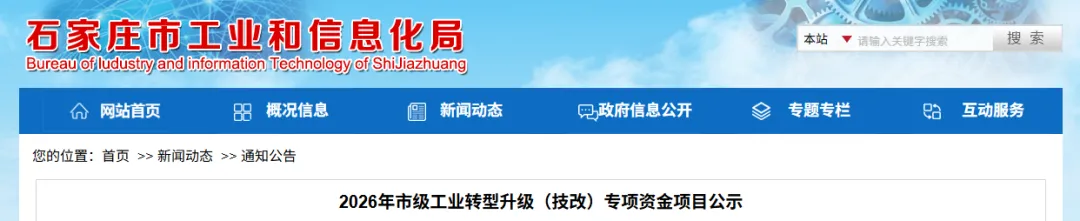 按照市工业和信息化局2025年10月27日印发的《关于申报2026年工业转型升级(技改)专项资金项目的通知》的相关工作要求,经各县(市、区)推荐,我局通过形式审查、行业专家评审、财务专家审计、现场核查等程序,确定了拟支持项目,现将2026年市级工业转型升级(技改)专项资金拟支持项目企业予以公示,请社会各界监督。