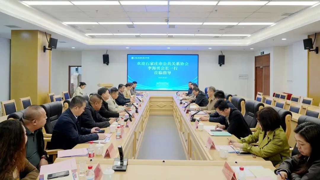李海勇指出,石家庄市公共关系协会作为中国公共关系协会在河北省唯一理事单位、4A级社会组织,紧扣城市发展战略定位,以公关赋能为抓手,在政企品牌塑造、宣传推广、舆情防控、民间外交等方面助力省会万亿级经济建设。他表示,此次实地参观,深感学校专业特色鲜明、育人体系完善,是服务河北企业发展的重要人才资源库。围绕下一步合作,他提出四点期望:一是开展党建共建,依托协会“红链”品牌联盟联合开展迎七一主题活动;二是在国际化校校、校企合作等方面建立长效机制;三是推进校企合作、成果转化、招生就业、课题研究等资源对接;四是依托全国平台联动各级协会与河北商会开展项目合作,推动校协企多方共赢。