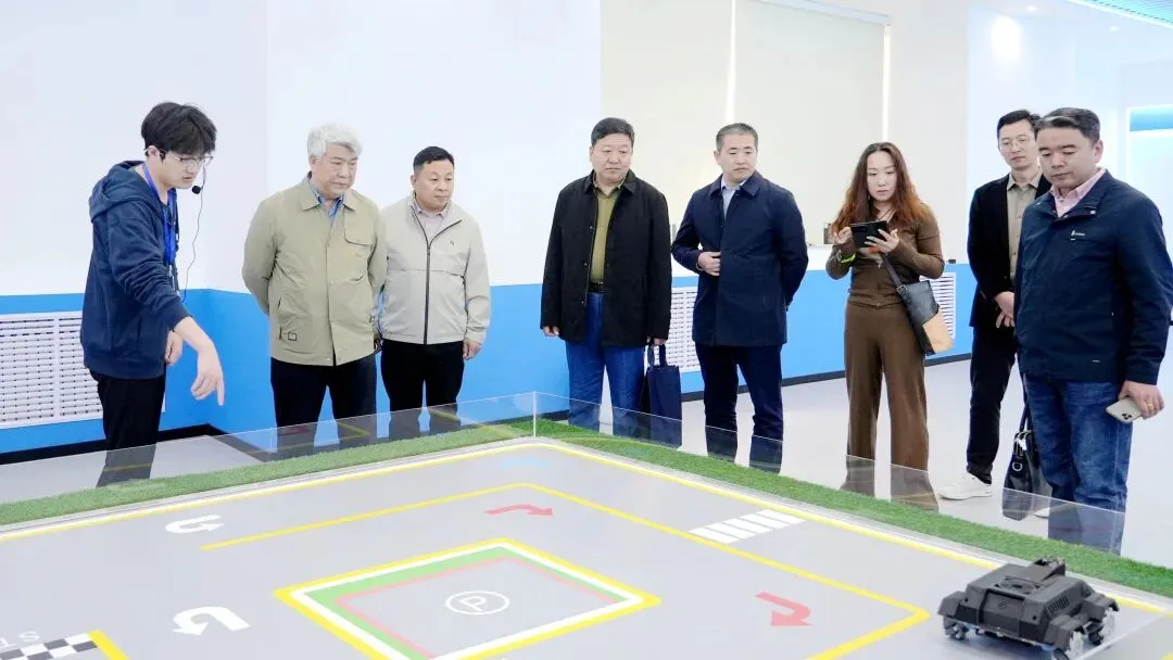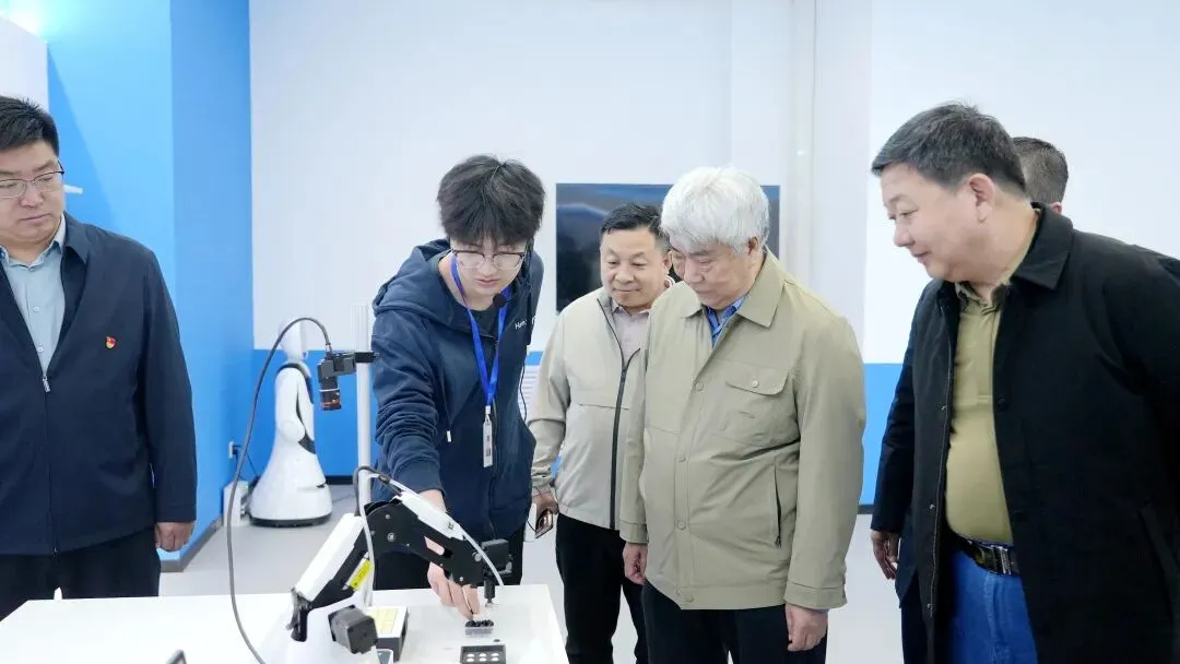 李海勇等一行人先后参观了我校智慧物流实训基地、商贸物流展室、无人机生产组装实训室中心、理想汽车实训基地、工业机器人综合创新实训中心、技术科普展厅、讯方综合实训室,了解了各实训室的建设、管理和使用情况,对我校实训室建设、现代化的教学设施给予了高度认同。