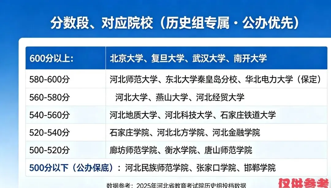 今天这篇,我就结合 2025年河北历史组官方录取数据,跟大家说点实在的:多少分能报、哪些学校要慎报、普通家庭怎么选才最稳。