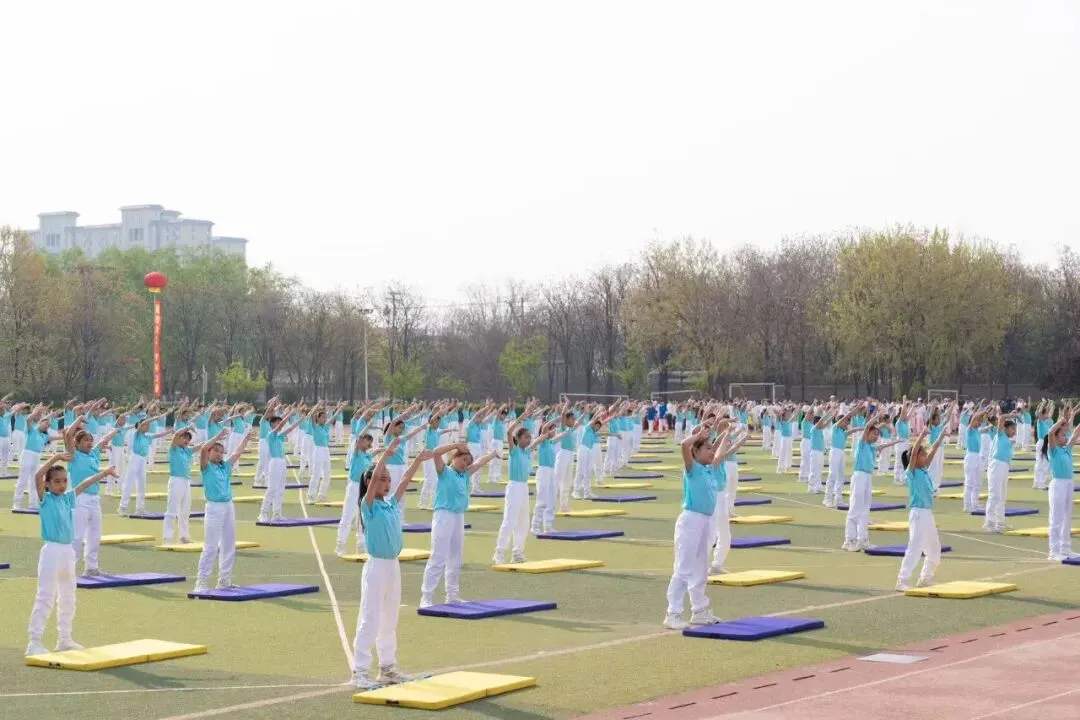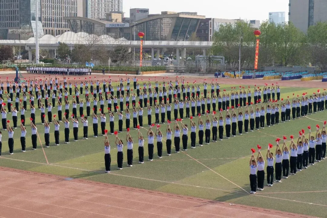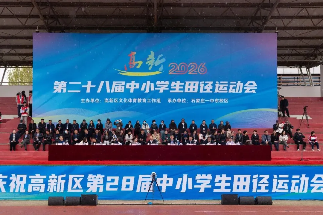 4月8日上午,石家庄高新区第二十八届中小学生田径运动会在石家庄一中东校区举行,全区48所中小学的5000余名师生参加开幕式。