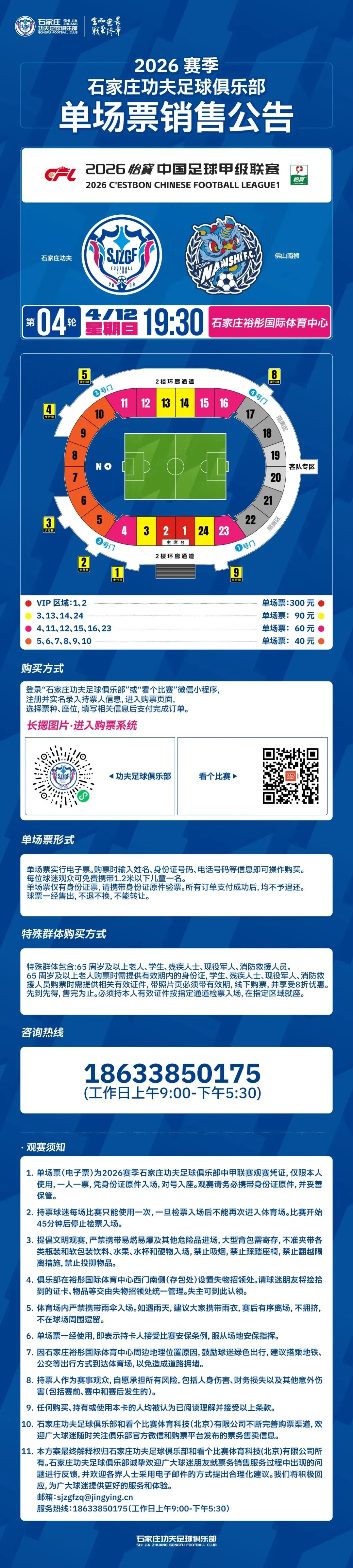4月12日本周日19:30,石家庄功夫将在主场裕彤国际体育中心,迎来佛山南狮的挑战。值得一提的是,本场对决也颇具“旧友重逢”的意味——佛山南狮主教练张池明曾在石家庄功夫担任主教练,而佛山队中球员刘欢亦曾效力功夫,并曾担任球队队长。本场比赛单场票正式开售,让我们一起齐聚裕彤,为石家庄功夫加油!