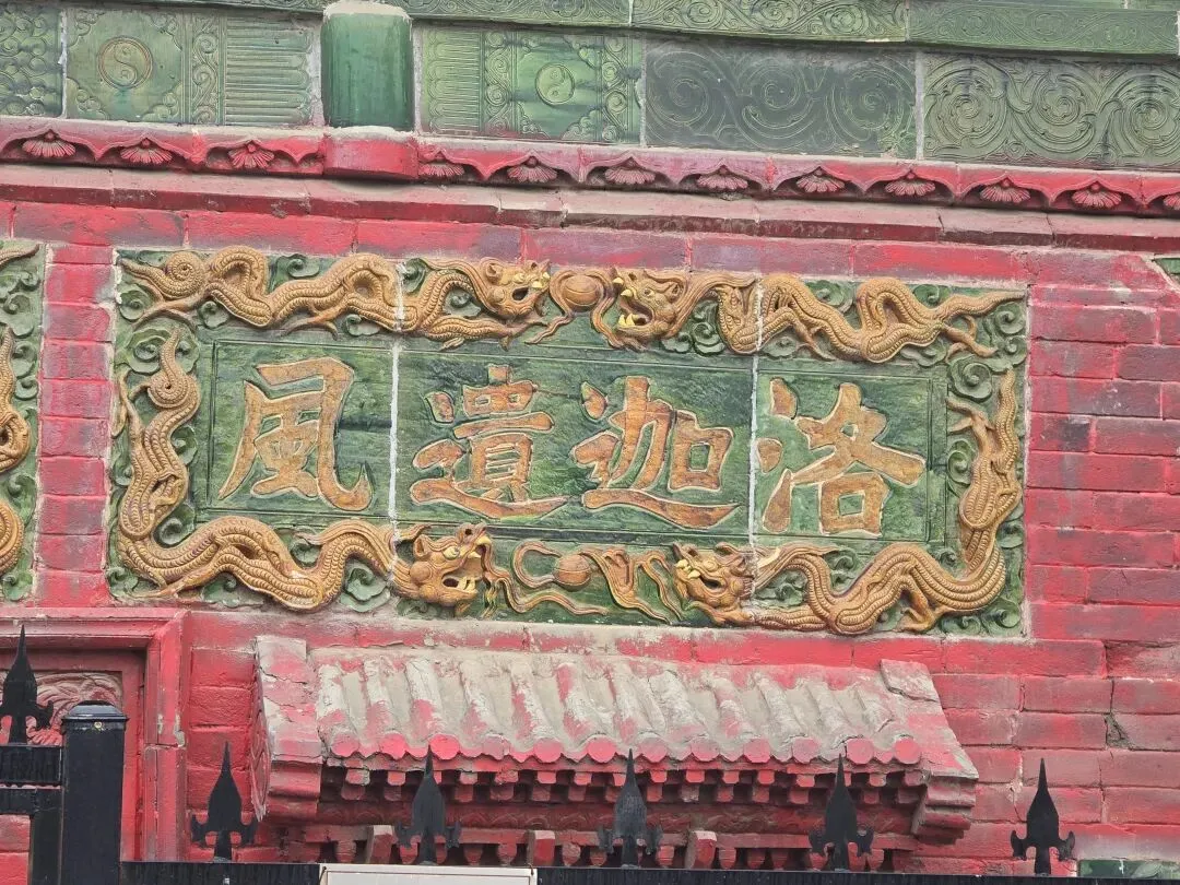 庙门上方镶着 12 个鎏金大字:"洛迦遗风、亲见如来、普陀胜境",字体苍劲,历经数百年风雨,依旧清晰挺拔。