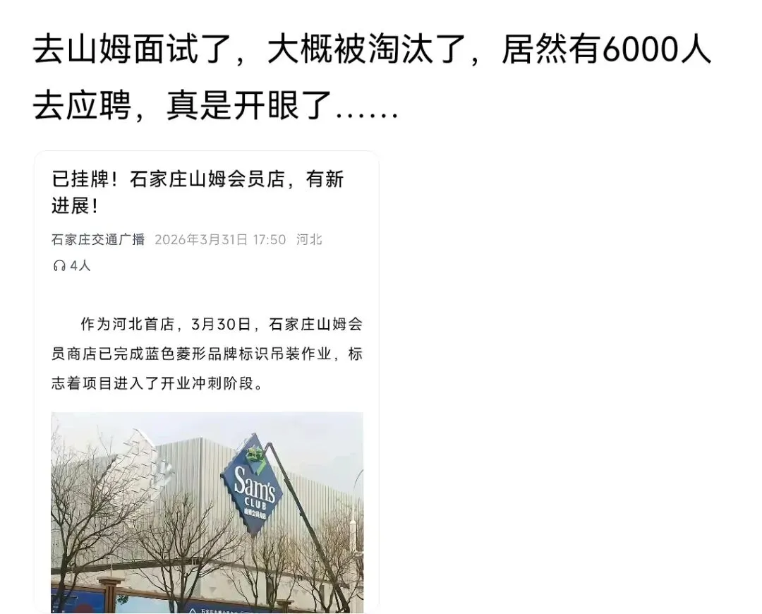最近刷到关于石家庄山姆超市招聘的消息,主要是应聘的人太多太多了……