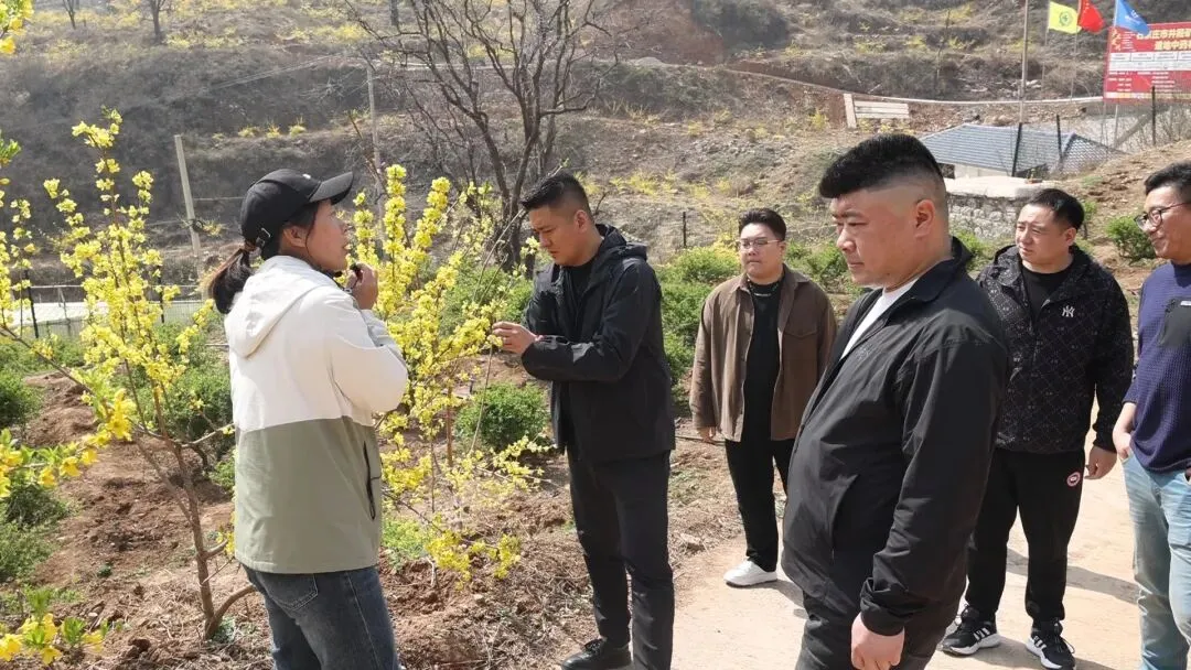 企业负责人重点演示了公司智农溯源系统的运行流程,直观展示了系统如何实现从种植、采收、加工到仓储、物流的全流程数字化管控,让调研组对企业数字化赋能产业发展的实力有了更清晰的认知。随后,调研组前往公司中药材种植地块,实地查看连翘(正值盛花期,漫山金黄、长势喜人)、酸枣树、金银花、地黄等的生长情况,近距离领略春日花海景致,详细询问各类药材的种植规模、生长周期、培育技术及生态种植模式,对企业以数字化推动新质生产力、以荒山种植实现生态与经济双赢、以“企业+基地+合作社+农户”模式联农带农的发展成果给予高度评价。