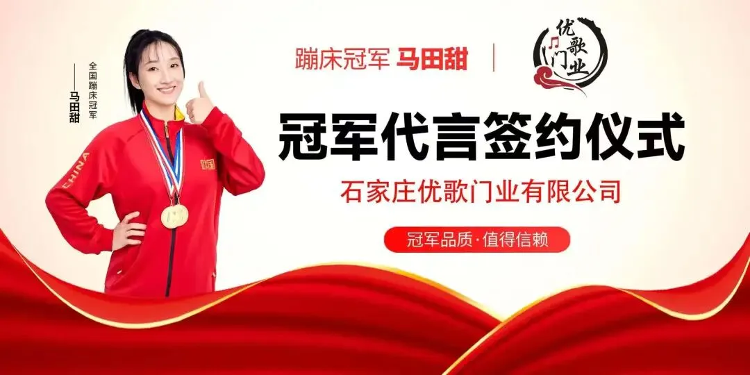 强大的品质保障是优歌门业的核心竞争力之一,产品由人保承保,百度 百科,为经销商提供了权威的品牌背书。同时,作为CCTV 展播品牌,优 歌门业在行业内建立了良好的口碑和形象。此外,公司还获得了冠军的 信赖之选,与蹦床冠军马田甜携手合作,进一步提升了品牌知名度和影