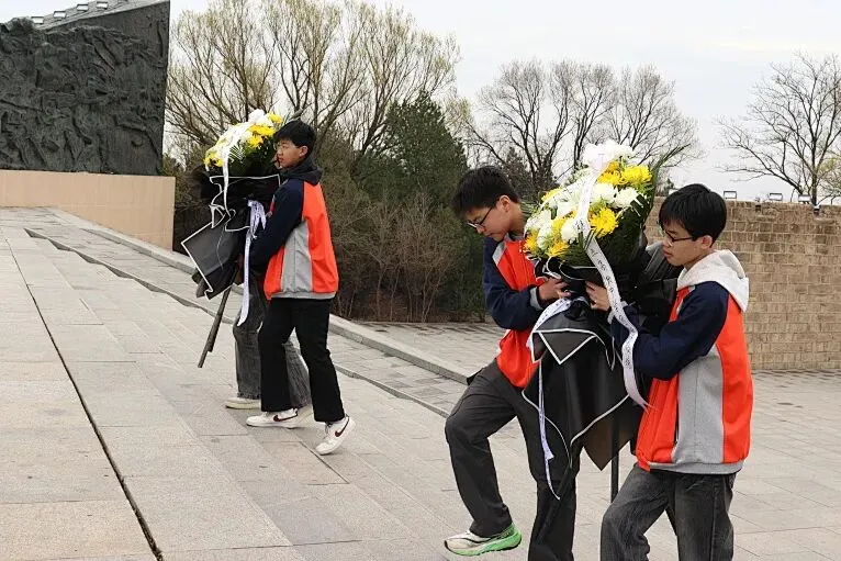 接着,四名学生代表抬着花篮缓步登阶,献上承载着无限敬意的花篮。铭记,是最好的致敬;奋斗,是最深的告慰。