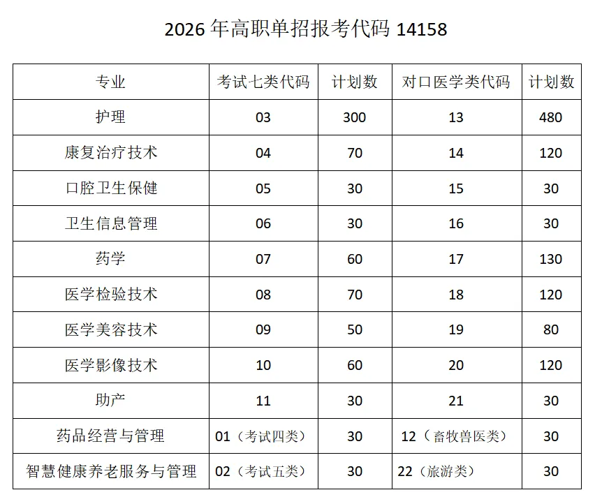 石家庄人民医学高等专科学校2026年高职单招报考代码