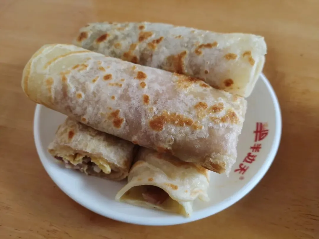 他家的特色就是饼皮煎得金黄酥脆,烙得恰到好处。里面的熏肉肥瘦相间,带有一种特殊的果木烟熏香气,吃起来特别香,却不油腻。店家会贴心地刷上一层酱料,卷上葱丝,一口下去,大饼的酥脆、熏肉的咸香和酱料的浓郁味道完美地融合在一起,层次感非常丰富,非常适合上班族或者逛街累了的时候来上两份。