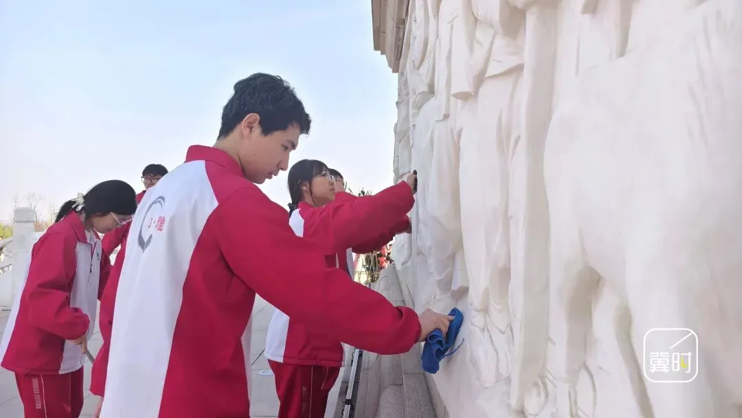 冀时新闻报道(河北台 杜岩卿 通讯员 焦洛 郜茜)4月3日上午,石家庄市平山县平山中学组织高二年级全体师生前往平山革命烈士纪念碑,开展“缅怀革命先烈 传承红色精神”清明节祭扫活动,将爱国主义教育融入“行走的思政课”。