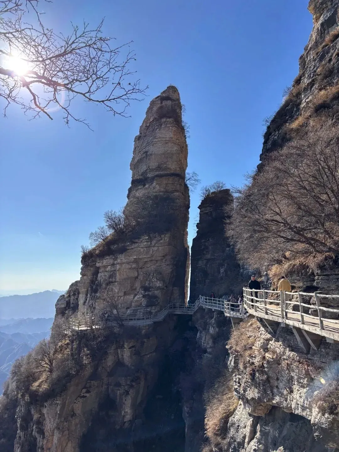 中餐后乘车约1.5小时赴【娲皇宫】是中国现存规模最大、创建时间最早的祭祀中华始祖女娲氏的古建筑群,被誉为 “华夏祖庙”,是研究中国根祖文化的重要基地,这座悬于丹崖绝壁的千年古刹,被满山秋色托举得愈发空灵。北齐始建的楼阁如展翅玄鸟,栖息在赭红色的崖壁上,而此时的太行山已换上盛装:崖下的黄栌红得似火,山桃叶染成橙黄,间杂着松柏的墨绿,从山脚一直铺到娲皇阁的飞檐下,仿佛女娲补天遗落的七彩石在此化作了漫山秋光。