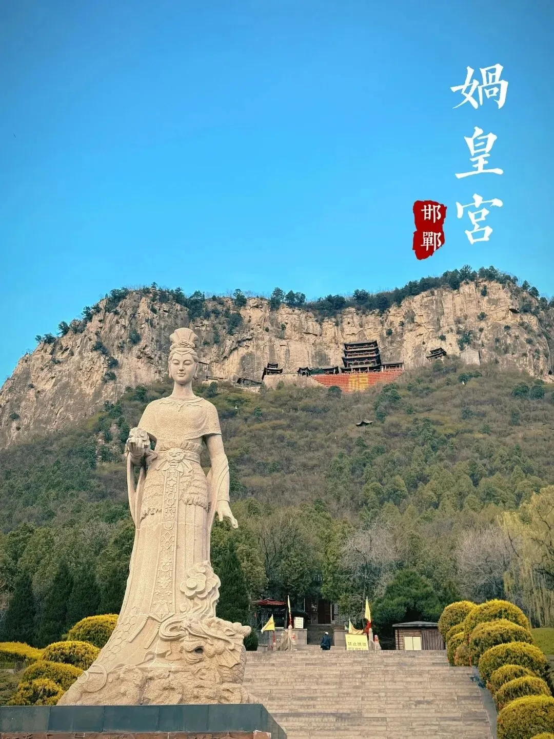 河北邯郸涉县中皇山,矗立着被誉为华夏祖庙的娲皇宫——中国现存规模最大、最早的女娲祭祀建筑群,5A级景区、五大祭祖圣地之一。