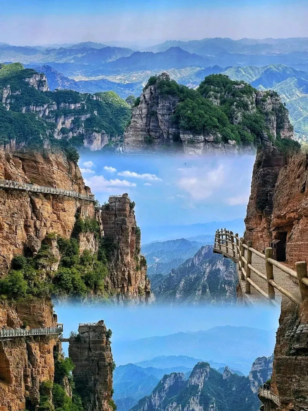 站在千米绝壁栈道上,脚下是深渊,头顶是流云;山盟台许一次誓言,雨后初霁偶遇佛光云海。
