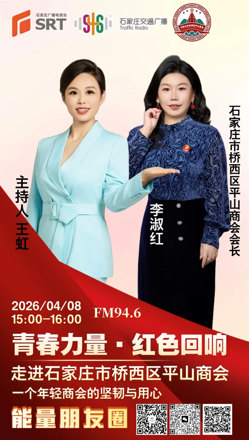 2026 年 4 月 8 日下午,石家庄广播电视台交通广播 946《能量朋友圈》特别推出【青春力量・红色回响】专题节目,邀请石家庄市桥西区平山商会会长李淑红做客直播间,分享商会发展历程、使命担当与平山籍企业家在外拼搏的心声坚守。