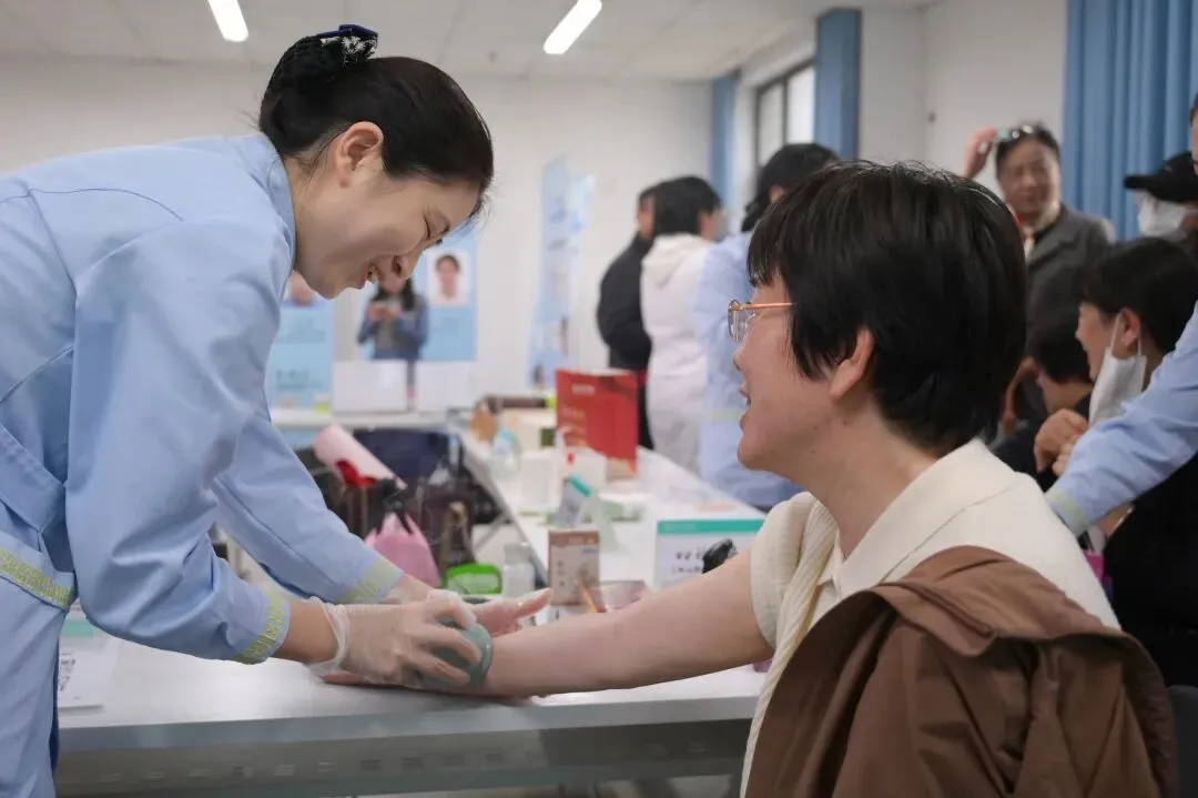 义诊与体验环节成为活动现场的“人气焦点”,主办方精心设置了专家坐诊区、适宜技术体验区、中医药文化展示区三大功能区域,全方位满足师生需求。专家坐诊区,来自石家庄市中医院各科室的骨干医师耐心为师生把脉问诊、辨识体质,针对不同人群的健康问题开具个性化调理方案和养生建议;适宜技术体验区,护理团队现场开展刮痧、拔罐、穴位按摩等中医适宜技术体验,让师生亲身感受中医药“简便验廉”的独特优势;文化展示区,道地草本茶饮、传统中药膏方、中医药养生文创产品整齐陈列,工作人员现场讲解各类药材的功效与应用,引导师生近距离感受中医药的文化内涵与实用价值。