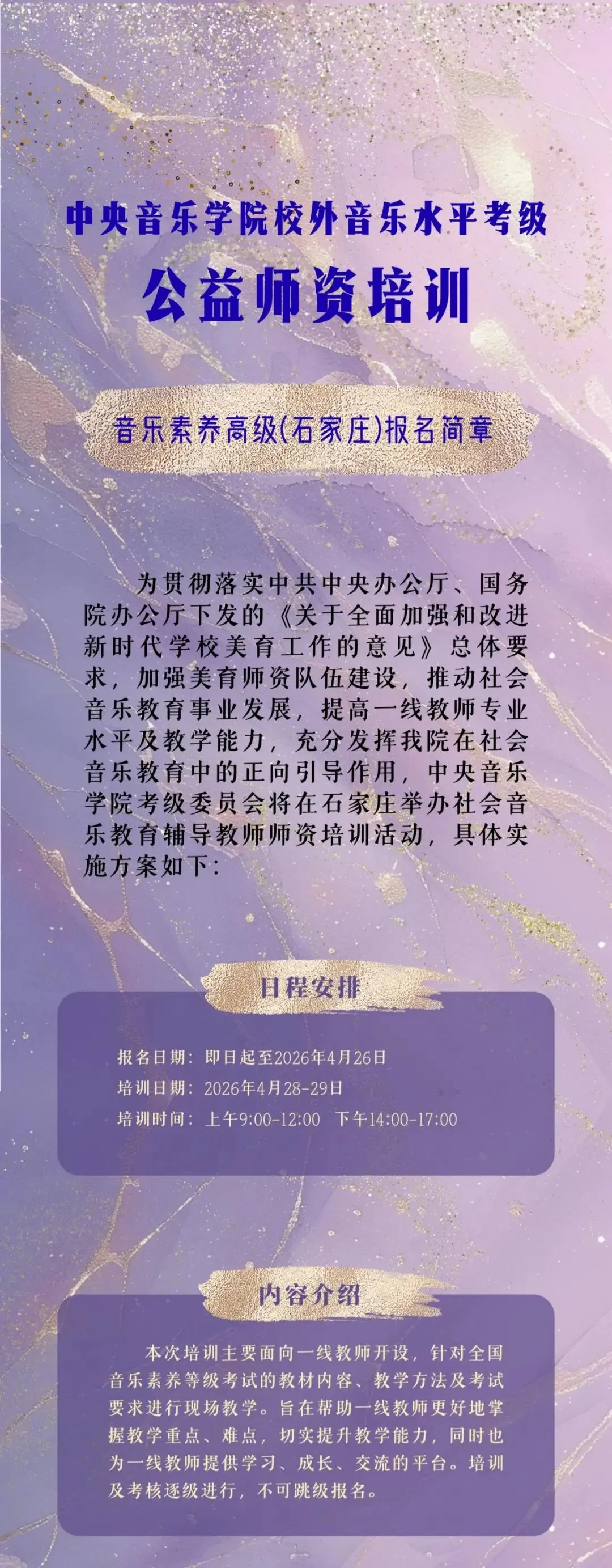 石家庄 | 中央音乐学院校外音乐水平考级公益师资培训:音乐素养高级报名简章