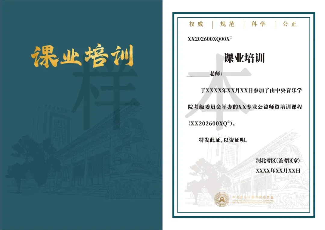 全程参加培训者,培训结束将获得由中央音乐学院考级委员会河北考区现场颁发的“社会音乐教师培训证书”。中央音乐学院考级河北考区