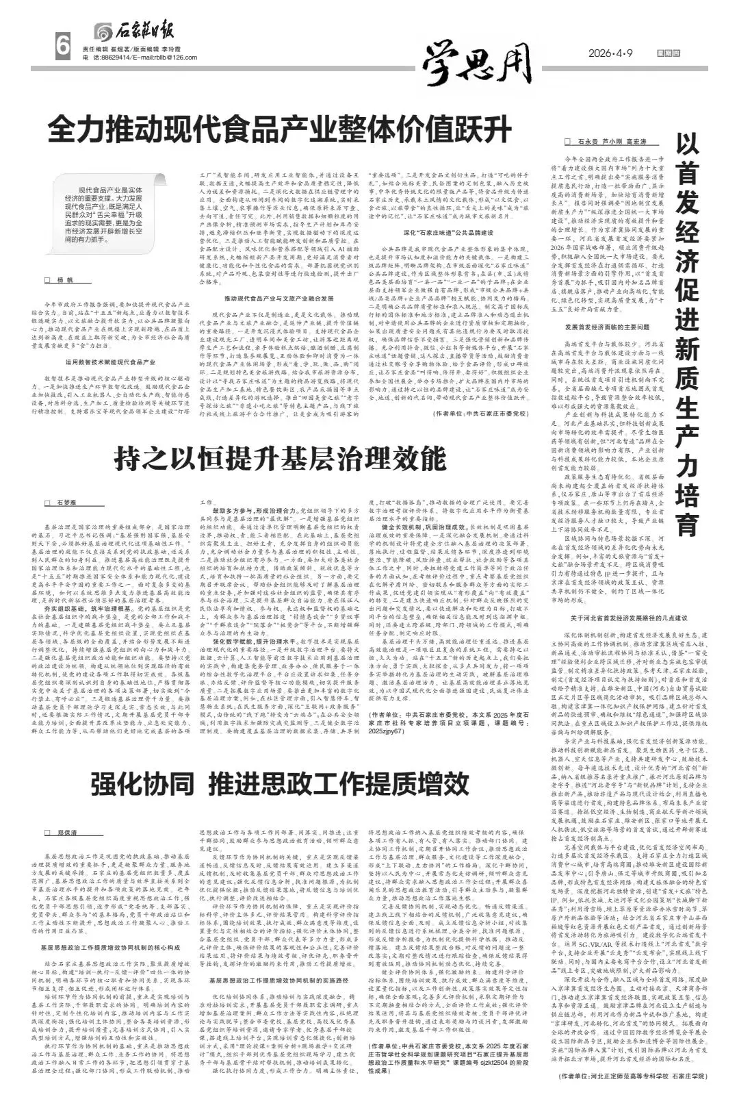 理论文章|《石家庄日报》“学思用”专版(4·9)