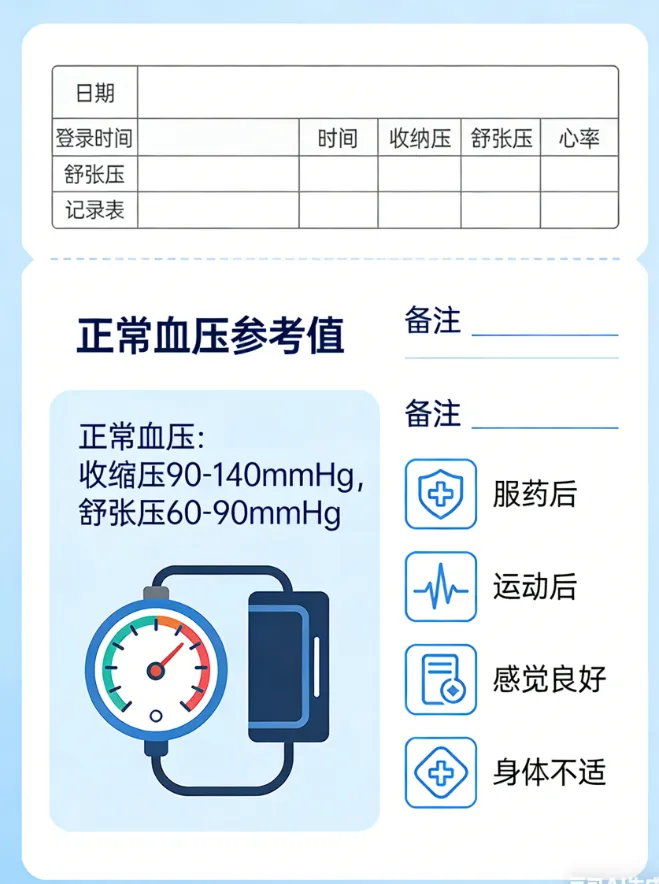 3.每天测2次:早上起床后、晚上睡觉前,固定时间测,记录血压变化