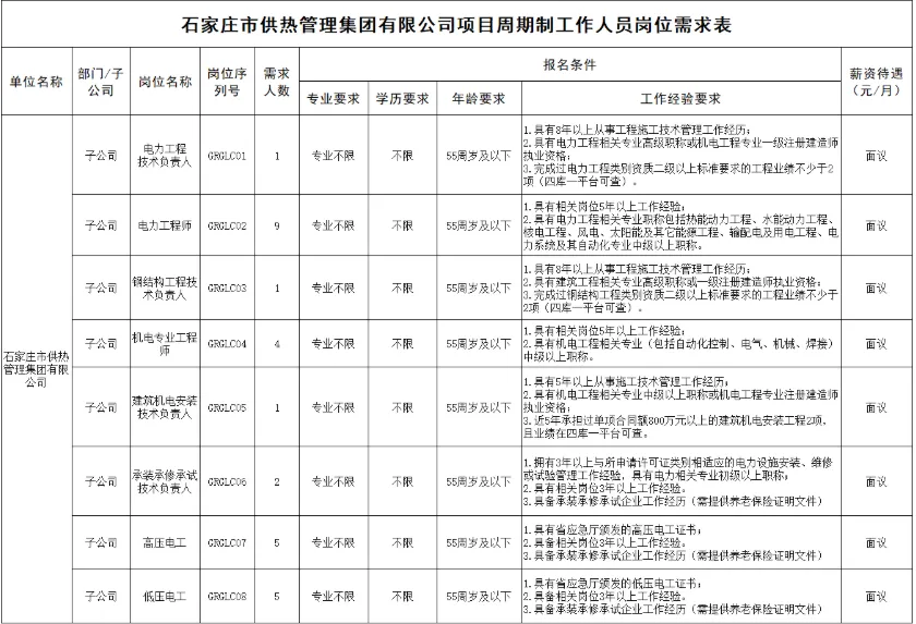 石家庄市供热管理集团有限公司招聘项目周期制工作人员公告