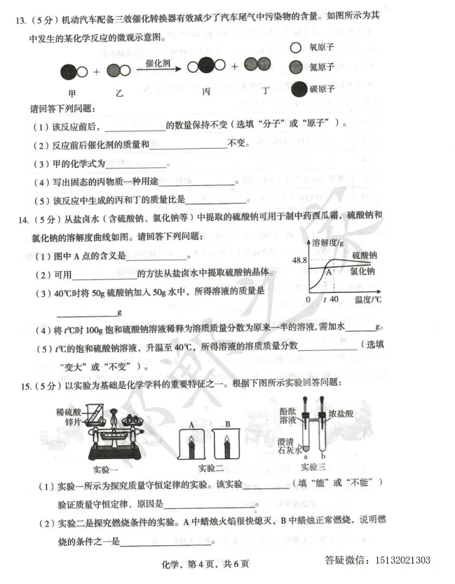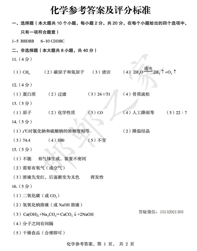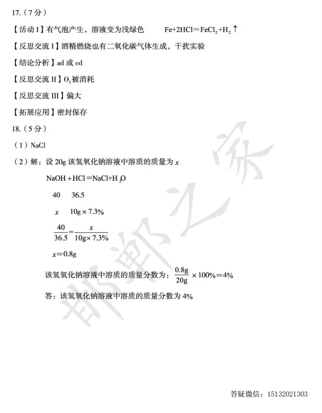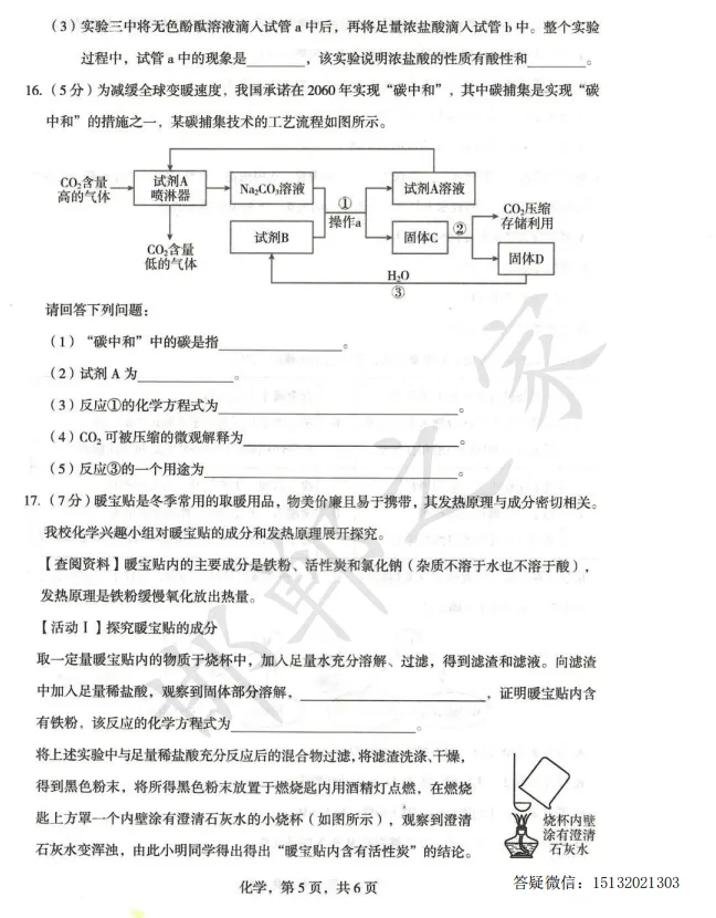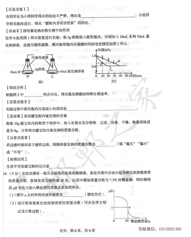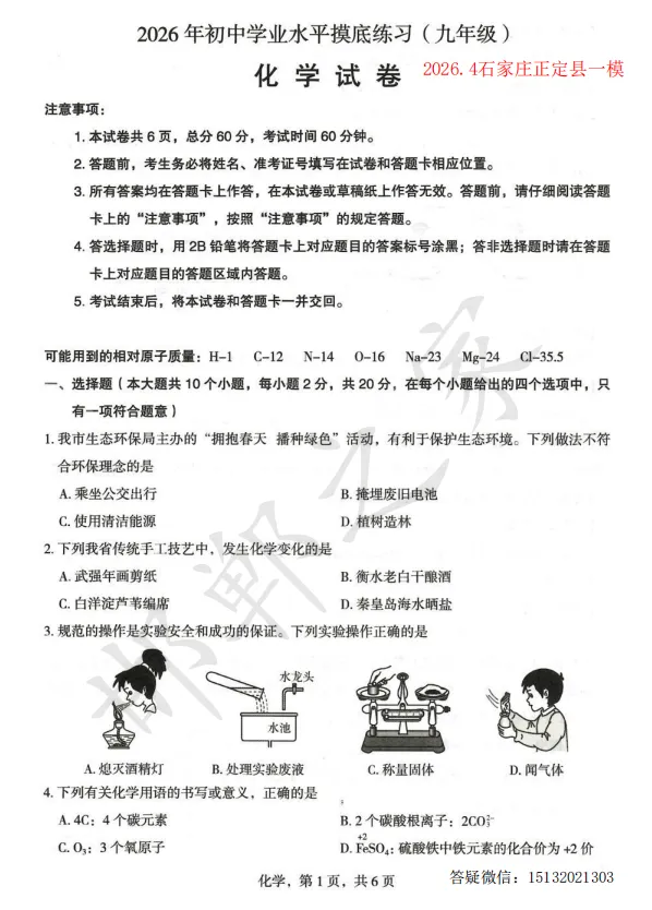 >2026.4石家庄正定县九年级一模化学试卷含答案