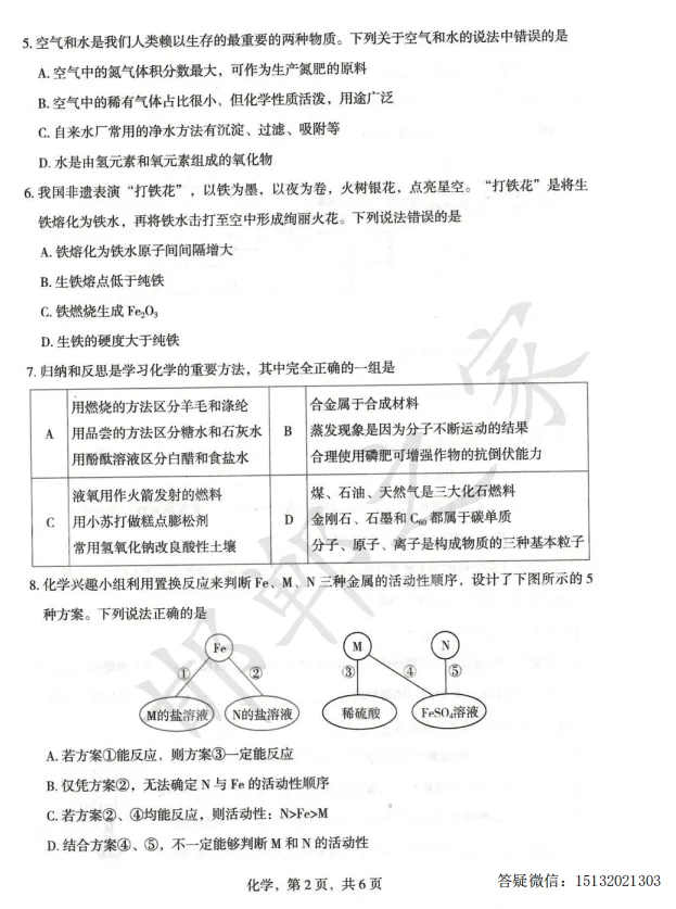 2026.4石家庄正定县九年级一模化学试卷含答案
