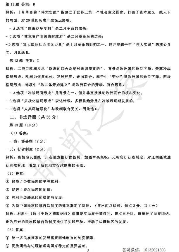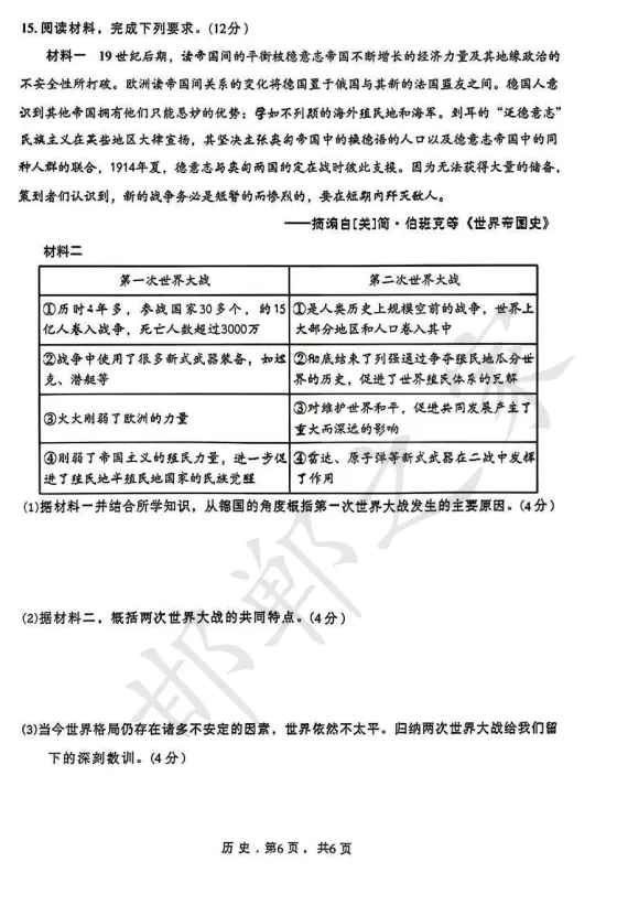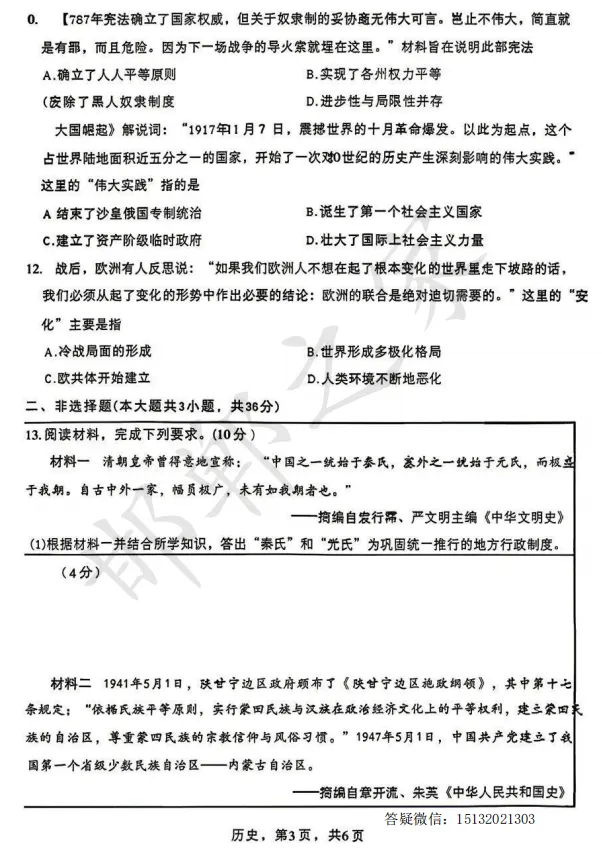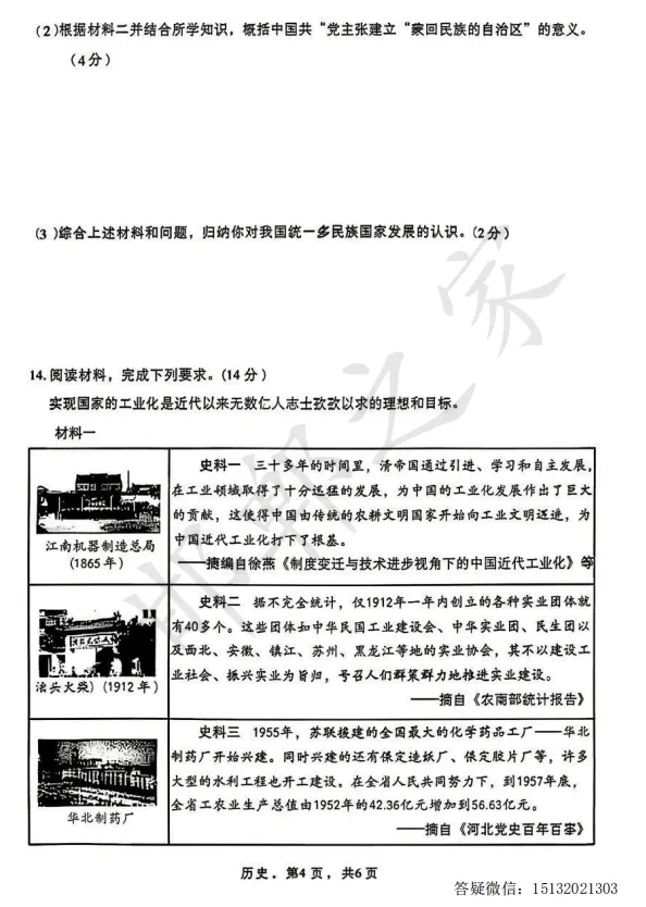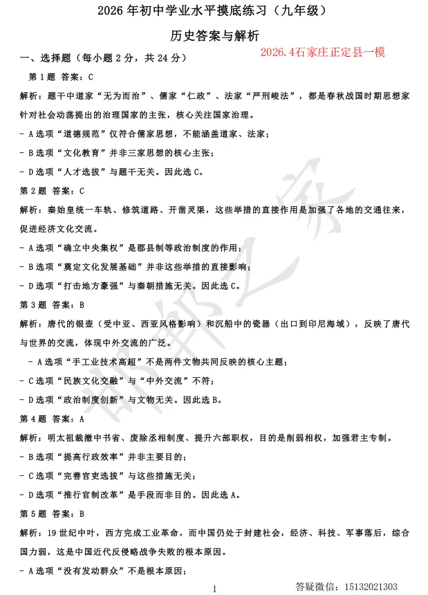 2026.4石家庄正定县九年级一模历史试卷含答案