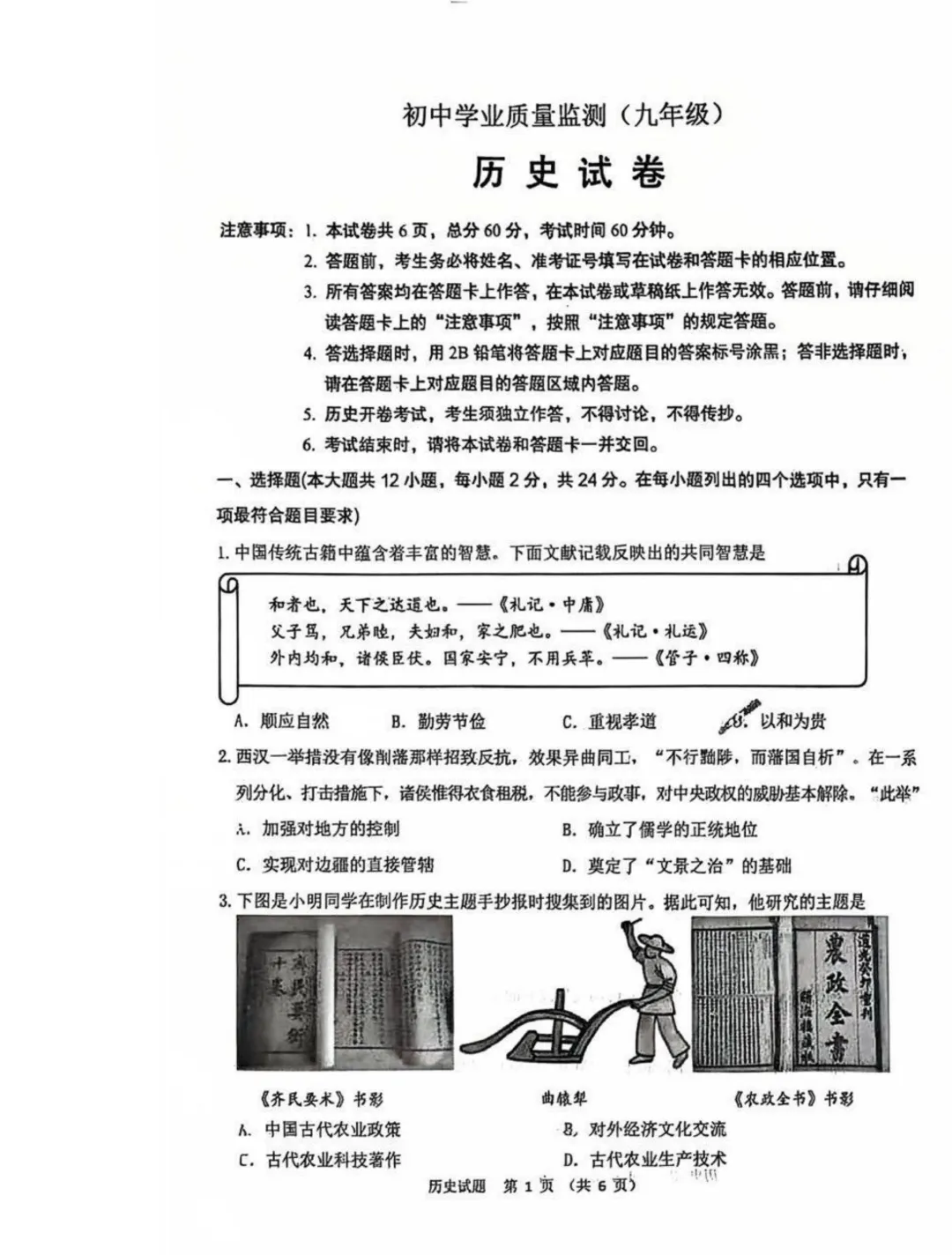 当前位置:首页>石家庄>2026年河北省石家庄新华区4月一模----历史试卷及答案