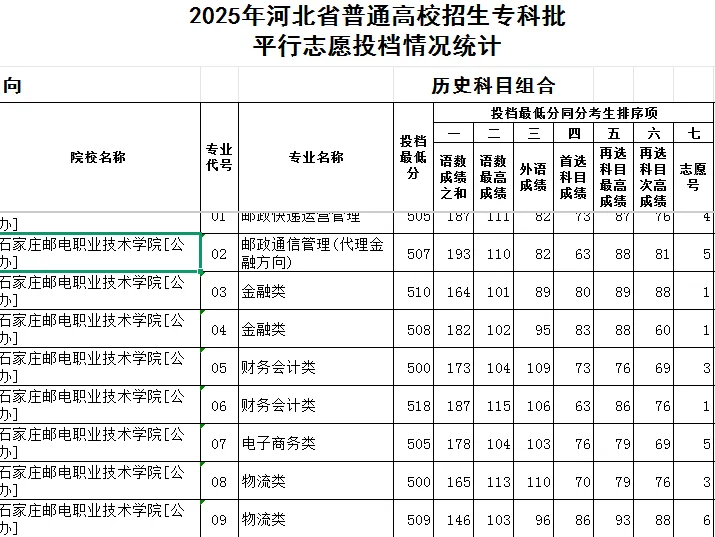 石家庄邮电虽为高职院校,却凭借中国邮政集团唯一直属院校与“双高计划”的优势,在报考时段备受中低分段考生、家长们的追捧。订单培养班更是直通邮政体系,超过97%的就业率与高国企就业占比是其多年深耕行业、打造硬核实力的体现,收分超本科线说明其价值所在。对来自普通家庭、追求稳定国企岗就业的考生而言,这所特色鲜明的院校无疑是优质选择之一。