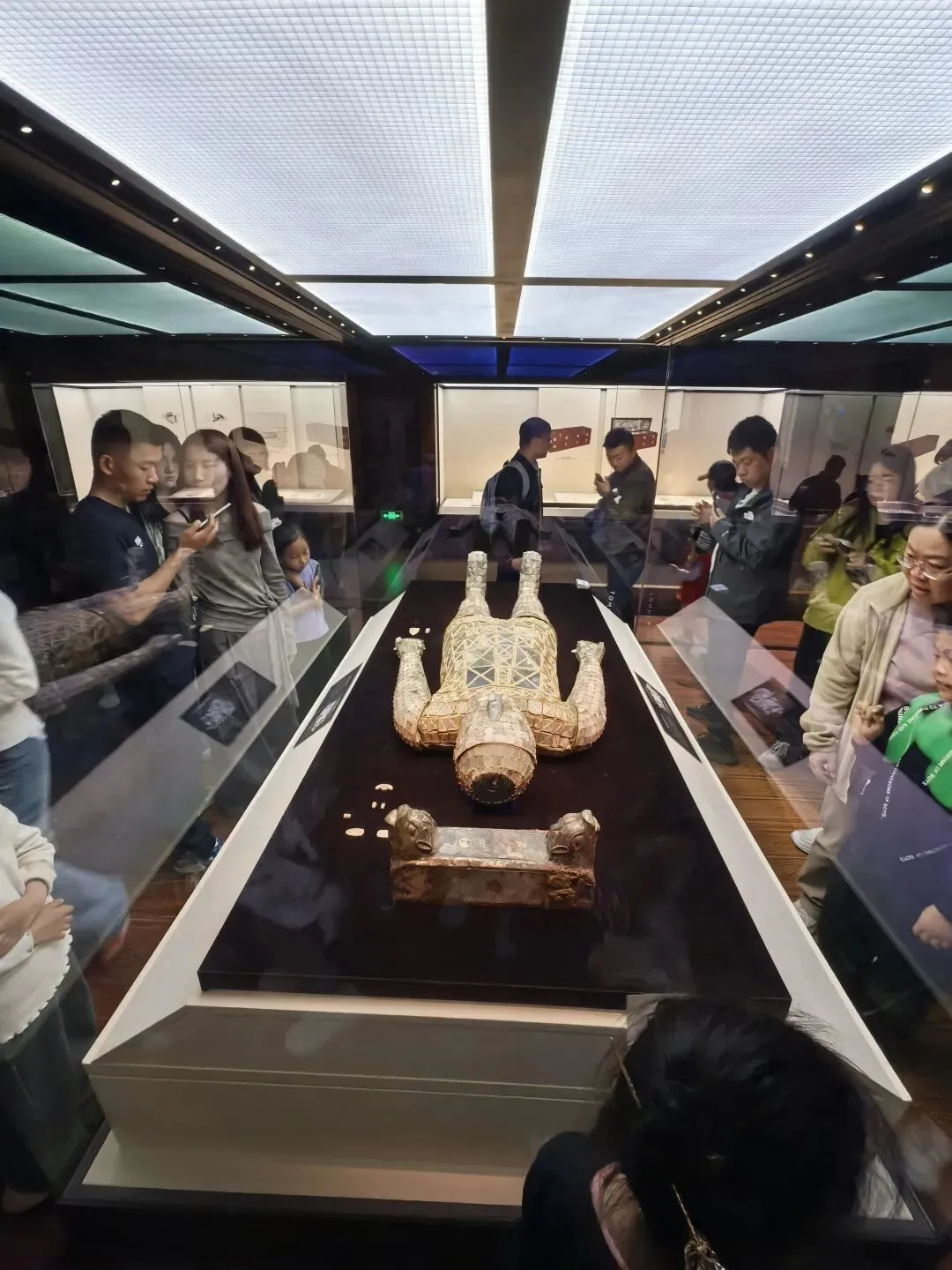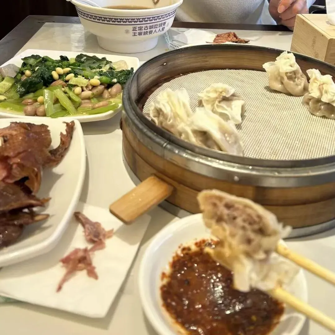 上午参观河北博物馆,需要提前在公众号预约。馆内镇馆之宝十分惊艳:西汉刘胜金缕玉衣、西汉长信宫灯、西汉错金博山炉、战国燕国透雕龙凤纹铜铺首等,大多出土于中山靖王刘胜及其妻窦绾的墓葬。中午,吃的清泉牛肉罩饼,罩火烧,烧麦
