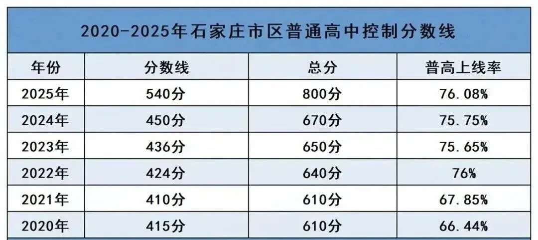 老师汇总了2020-2025 年石家庄普通高中录取分数线,供家长们参考: