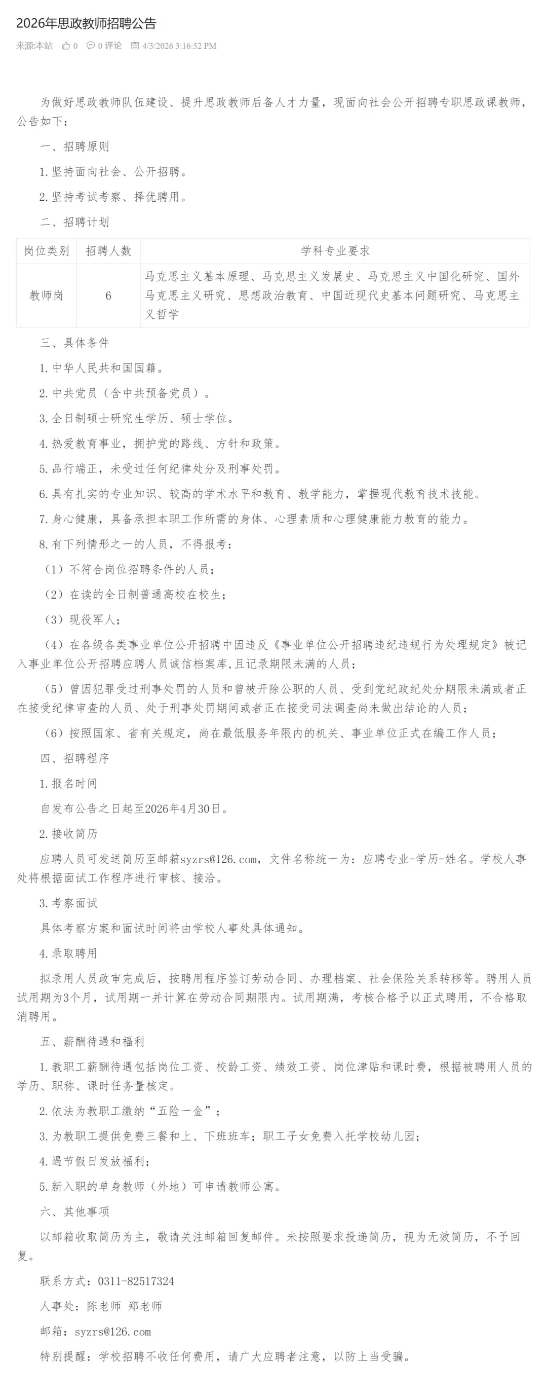 2026年思政教师招聘公告