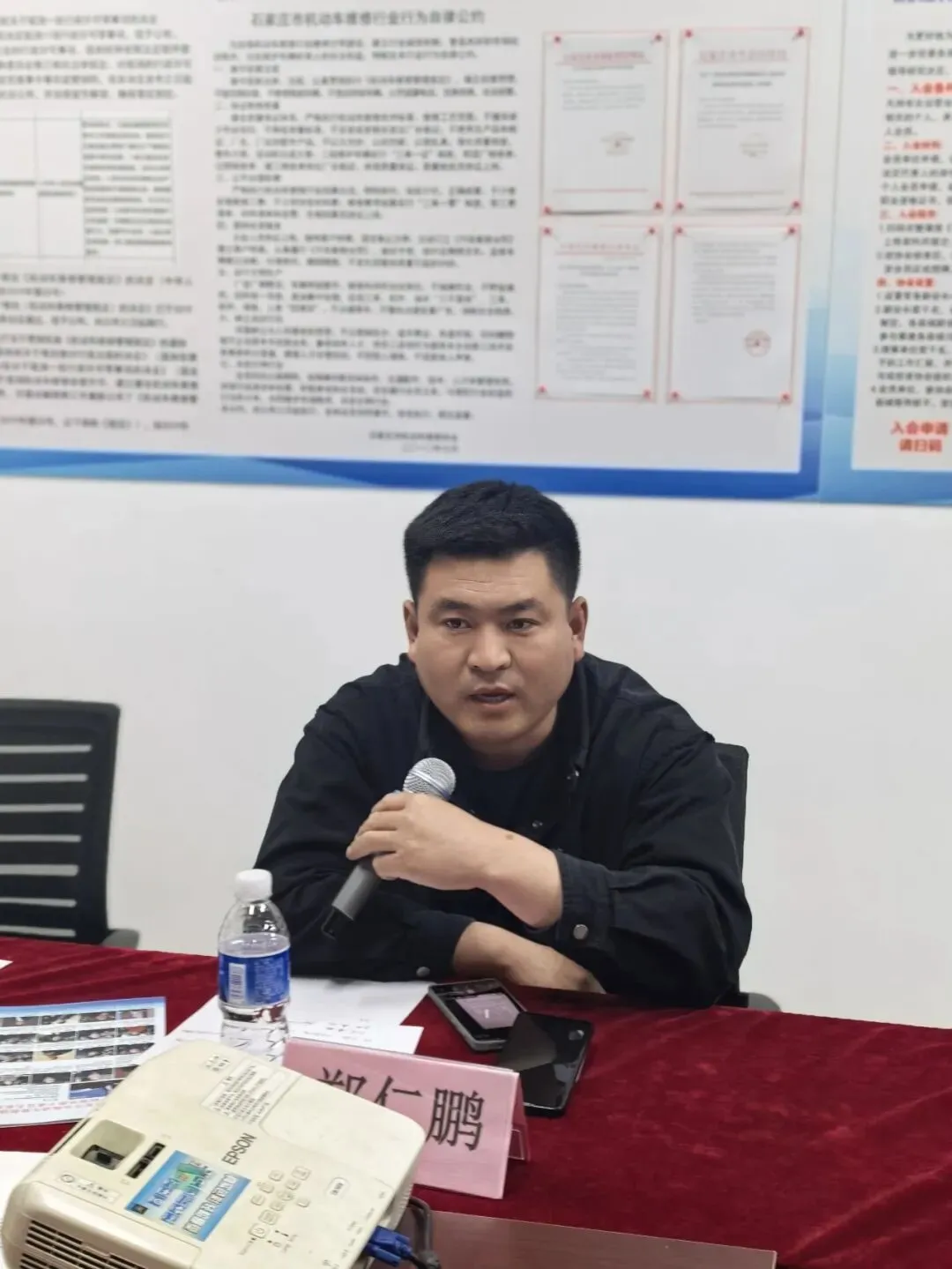 郑仁鹏副会长发言,支持协会的各项举措,他表示要率先成立“汽车故障公益诊断中心”,做好榜样,为车主提供优良服务。