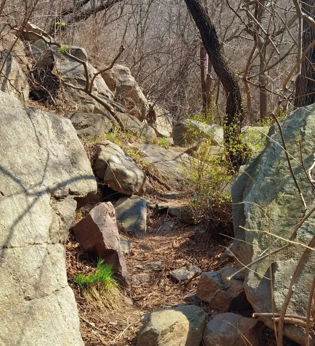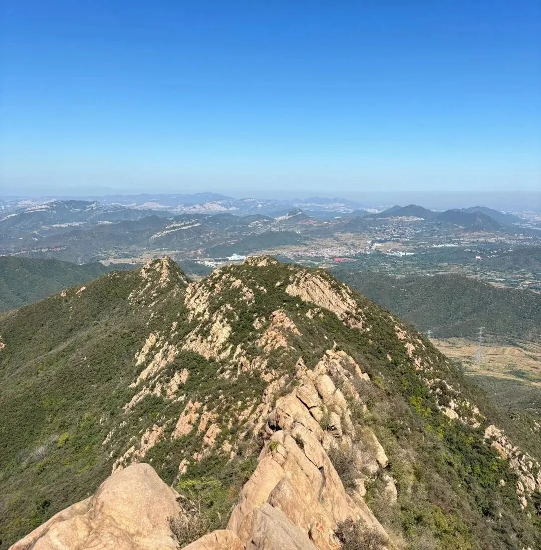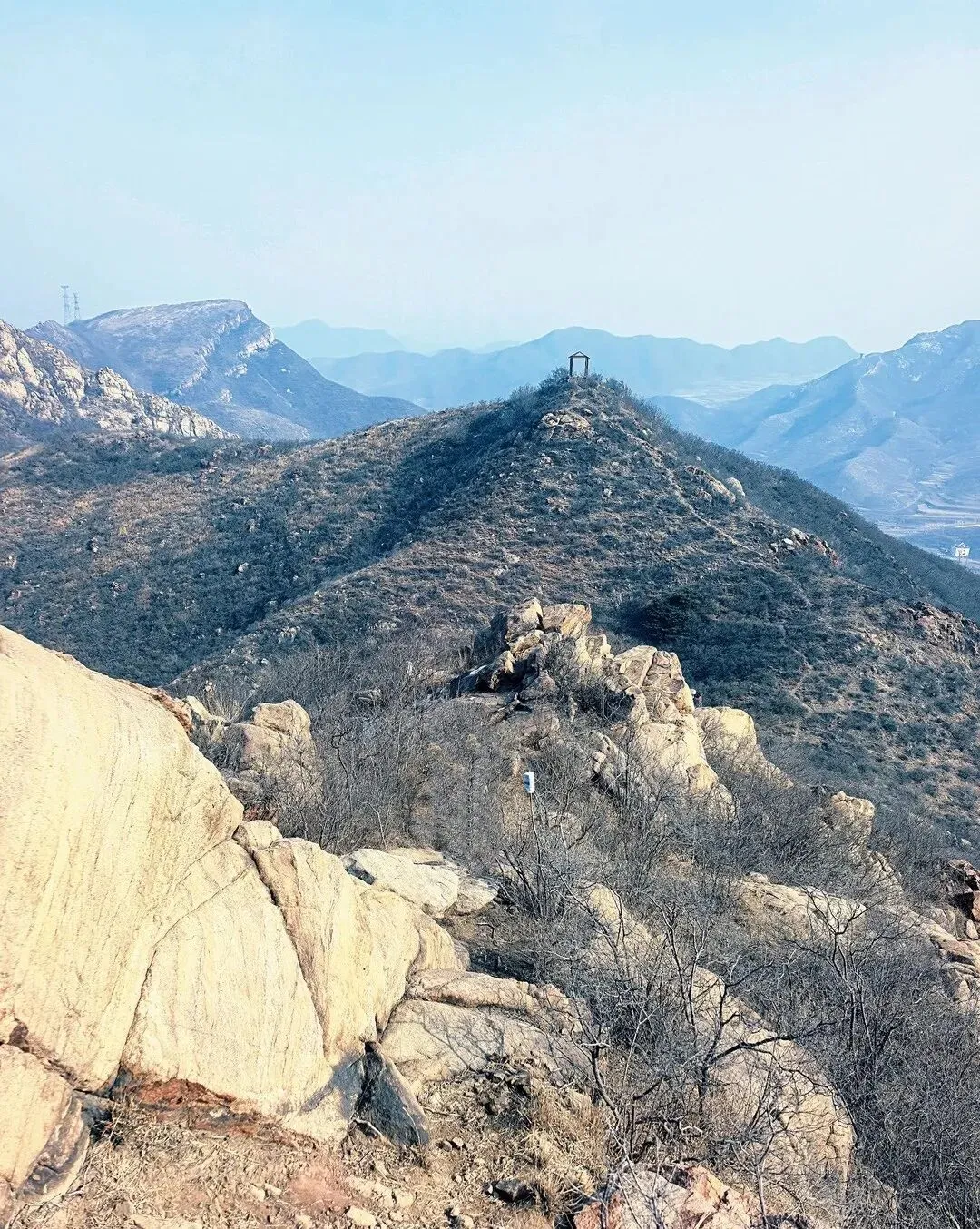五峰山大小刀背,绝对是6座山里“最野”的路线之一——路面碎石嶙峋,崎岖不平,手脚并用是常态,甚至需要贴着崖壁小心翼翼挪动,惊险又刺激。导航:封龙山土地庙(停车点),从土地庙旁的小路进山