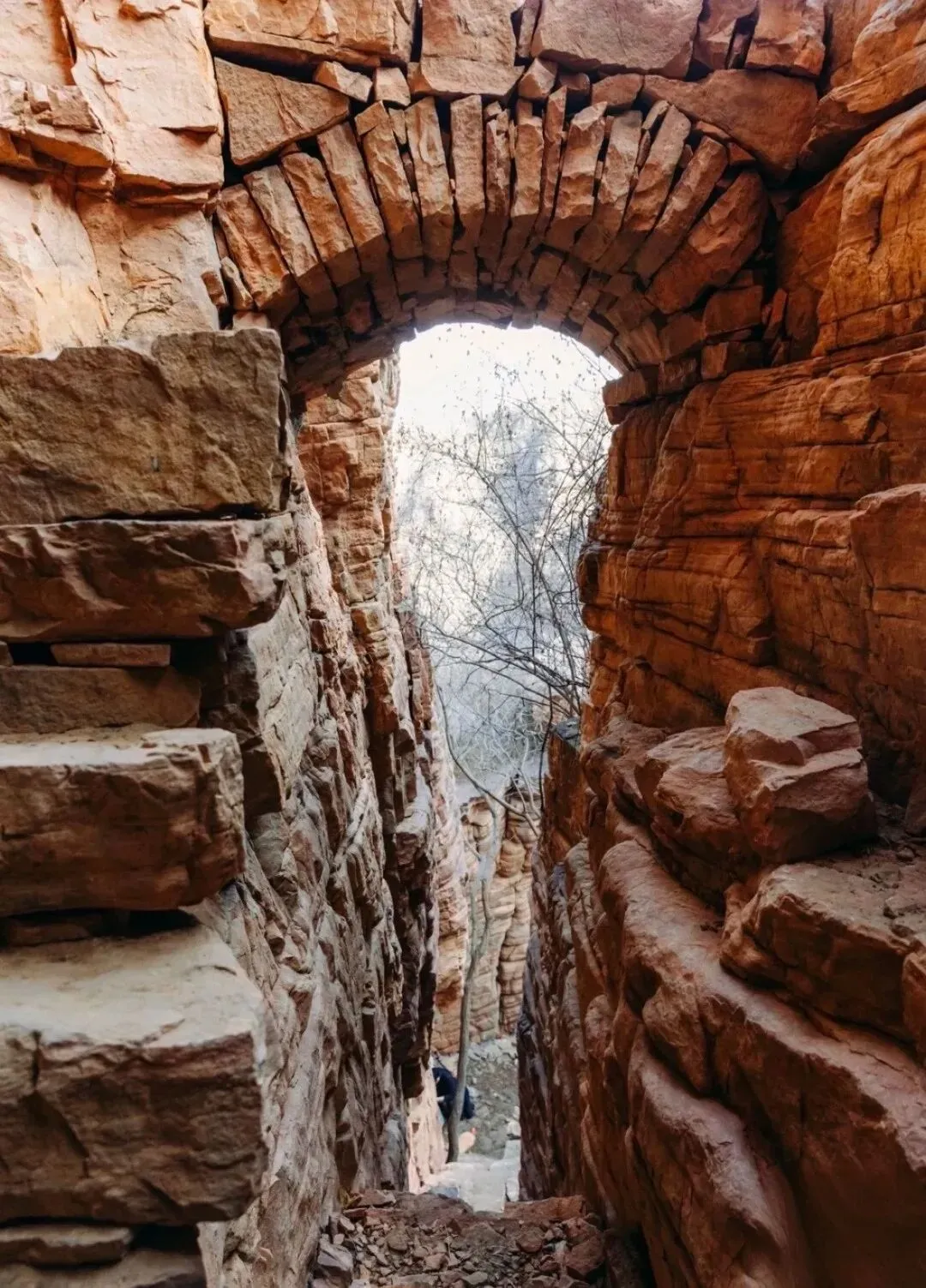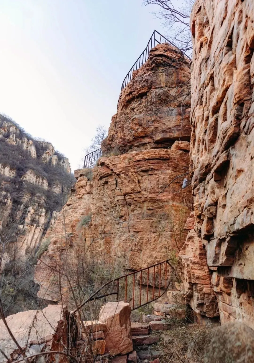 如果说其他野山的亮点是绿植与奇石,那好汉坡的特色,就是藏在山野间的红色岩石峡谷。整条路线被红色岩石包裹,峡谷错落、岩壁陡峭,行走其间,既能感受徒步的挑战感,又能欣赏到独特的地质风光,随手一拍都是极具冲击力的山野大片。路线难度中等偏上,需要一定的体力支撑,建议穿防滑登山鞋,注意脚下碎石,避免打滑。导航:井陉好汉坡