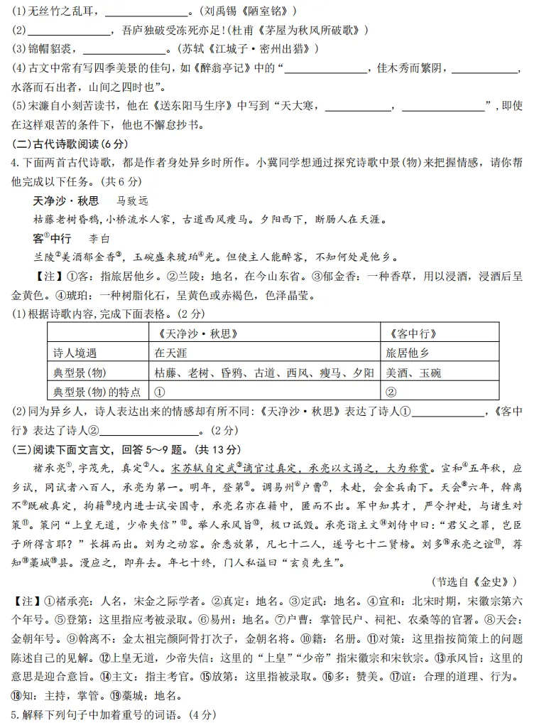 7.(2分)褚承亮调任易州户曹,还未去赴任,正赶上金兵南下。(意思对即可)