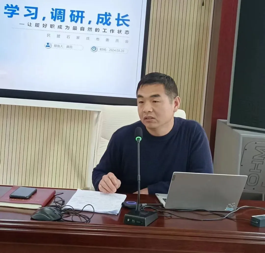 民盟石家庄市委秘书长龚蕊以学习、调研、成长为关键词,就“让履好职成为最自然的工作状态”对支部主委进行了相关盟务工作培训。