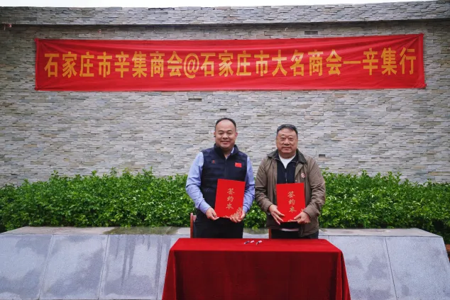 活动的高潮是,在其乐融融,气氛热烈的氛围中,石家庄市辛集商会与大名商会举行隆重的战略合作意向签署仪式。双方商会会长在全体会员见证下,共同签署战略合作意向书,正式建立长期友好合作关系。根据意向,双方将本着“平等互利、优势互补、资源共享、协同发展”原则,建立常态化沟通机制,定期开展互访交流、商务考察、资源对接等活动,推动两地会员企业在信息互通、产业协作、市场拓展、项目共建等多领域深度合作,携手搭建跨区域交流合作新平台,共同助力辛集、石家庄、大名三地经济高质量发展。