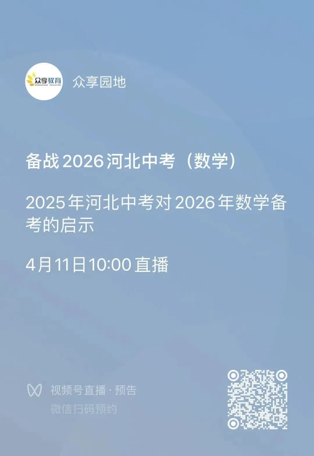 本周六,众享教育将带来首期中考备考公益直播课,课程聚焦2025中考试卷中的典型真题,通过深层次拆解题目内核,精准剖析命题依据与出题逻辑脉络,为2026届河北考生清晰指明备考方向,助力大家科学规划复习路径,高效备战中考数学,稳稳拿下核心得分点。