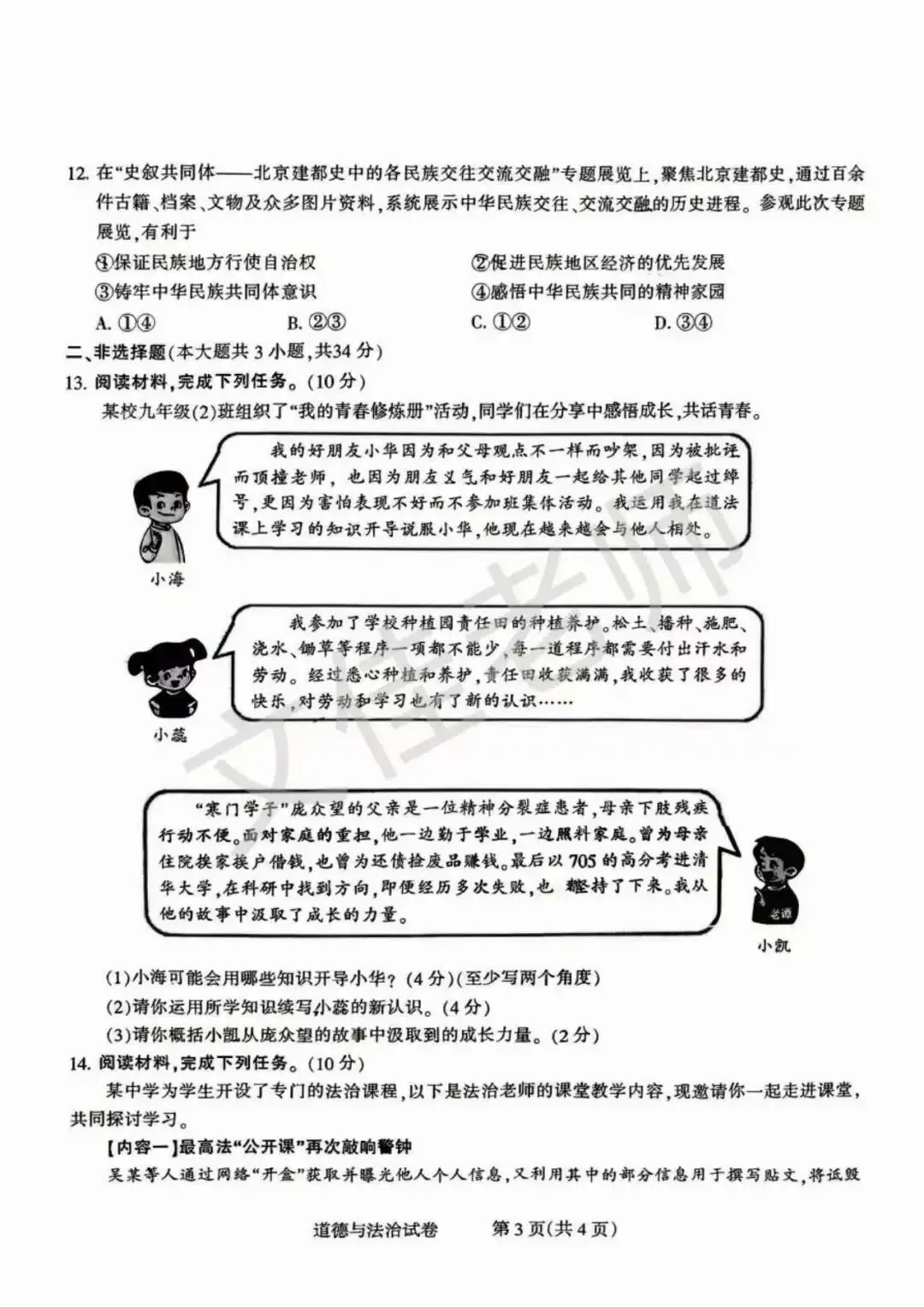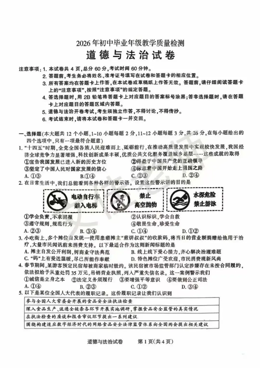 【初三一模】2026.3石家庄市长安区初三一模道法(含答案)
