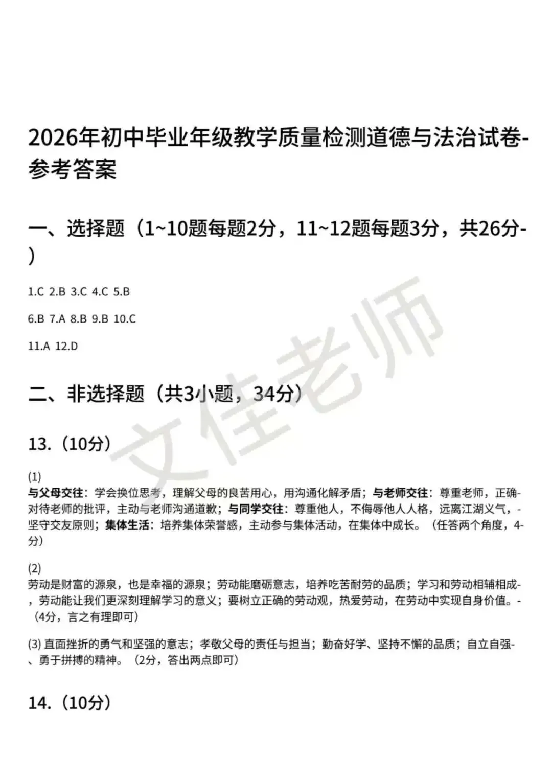 >【初三一模】2026.3石家庄市长安区初三一模道法(含答案)
