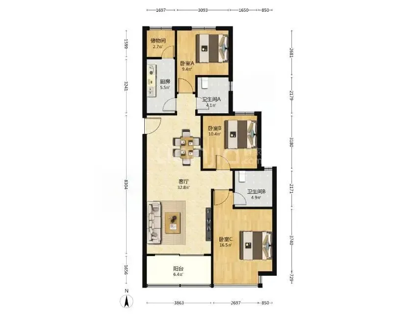 🏠 户型与居住:通透大三居,采光通风一步到位