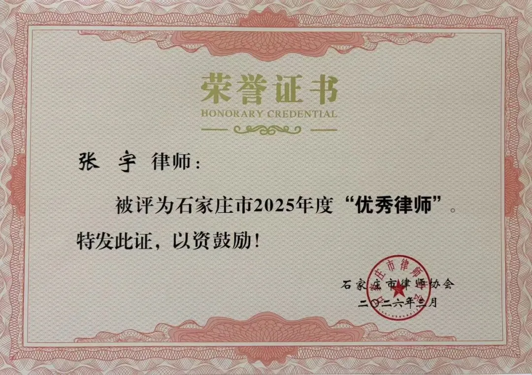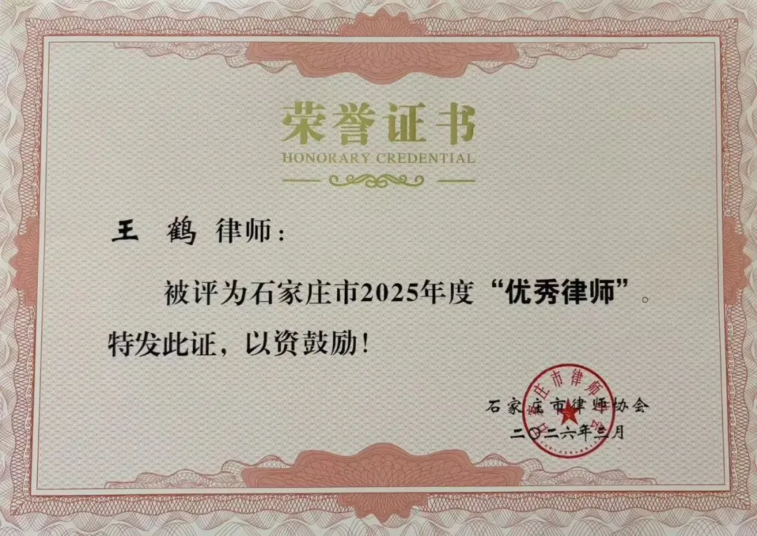 张宇律师和王鹤律师凭借扎实的专业能力、卓越的执业素养以及在法律服务领域的突出贡献,获评“优秀律师”称号。