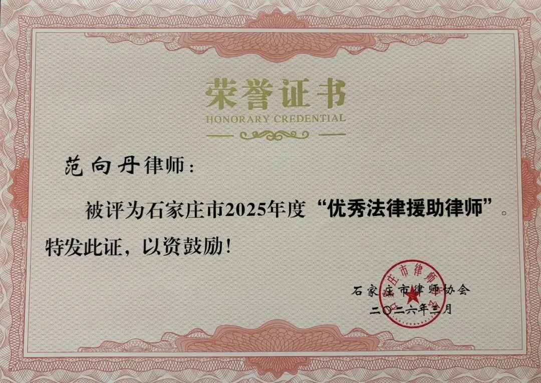 范向丹律师凭借着精湛的专业素养、深厚的为民情怀、坚韧的责任担当,获评“优秀法律援助律师”称号。