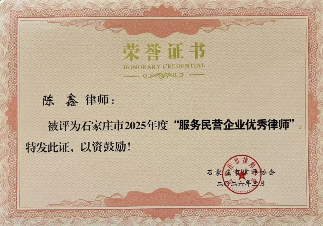 陈鑫律师凭借深厚的专业能力、务实的服务理念与突出的服务成果脱颖而出,获得“服务民营企业优秀律师”称号。
