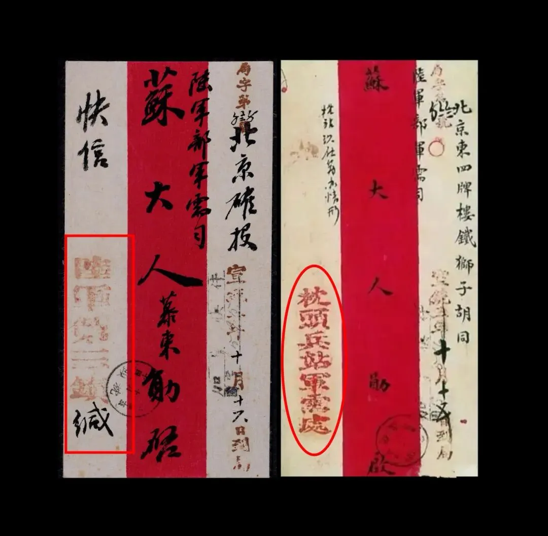 收件尊称:“苏大人勋启”,“苏大人”即陆军部军需司司长(清末最后一任军需司司长为苏鲁岱),“勋启” 对高级官员的敬语,说明寄件方与收件方为上下级军政关系。